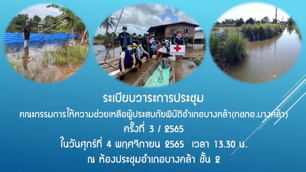 วันที่ 4 พฤศจิกายน 2565 เวลา 13.30 น. นางมัทยา สุนทรวาทิน นักวิชาการส่งเสริมการเกษตรชำนาญการ รักษาราชการแทน เกษตรอำเภอบางคล้า พร้อมด้วยเจ้าหน้าที่สำนักงานเกษตรอำเภอบางคล้า ร่วมประชุมคณะกรรมการให้ความช่วยเหลือผู้ประสบภัยพิบัติอำเภอ (ก.ช.ภ.อ.) ครั้งที่ 3 เพื่อพิจารณาให้ความช่วยเหลือผู้ประสบภัยพิบัติ (อุทกภัย) ในพื้นที่อำเภอบางคล้า เบื้องต้นมติที่ประชุมรับรองให้การช่วยเหลือเกษตรกร (ด้านพืช) จำนวน 10 ราย พื้นที่เสียหายจำนวน 20 ไร่ 2 งาน โดยมีนายชูชาติ จั่นทอง นายอำเภอบางคล้า เป็นประธานการประชุม ณ ห้องประชุมชั้น 2 ที่ว่าการอำเภอบางคล้า จังหวัดฉะเชิงเทรา