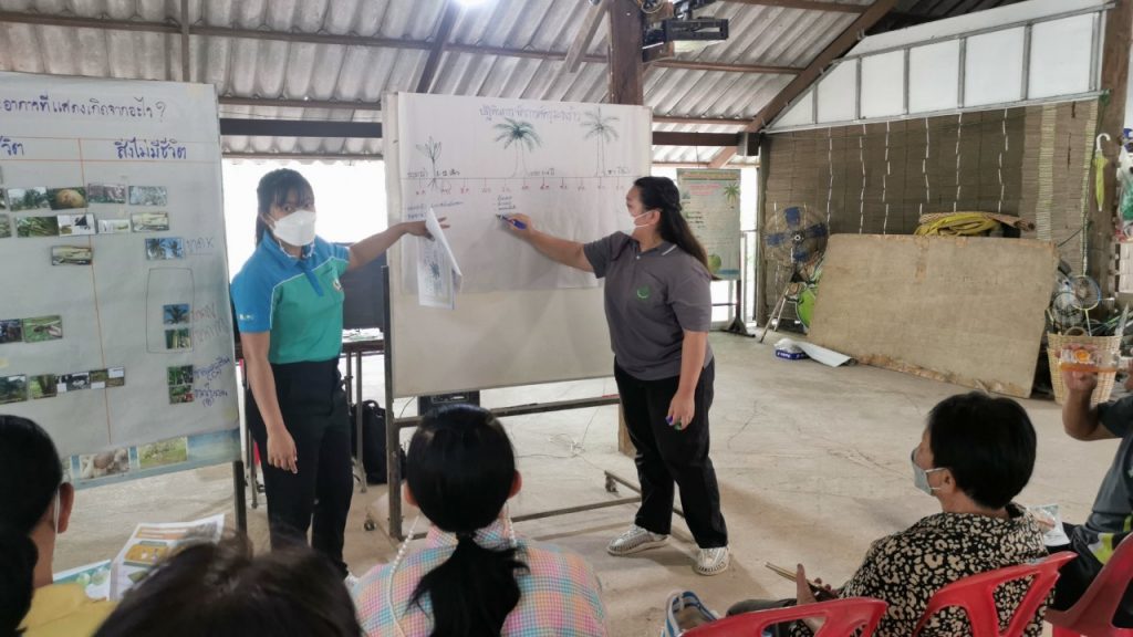วันที่ 8 ธันวาคม 2565 สำนักงานเกษตรอำเภอบางคล้า ร่วมกับกลุ่มอารักขาพืช สำนักงานเกษตรจังหวัดฉะเชิงเทรา ดำเนินการจัดกระบวนการเรียนรู้แก่เกษตรกร เพื่อพัฒนาและยกระดับคุณภาพศูนย์จัดการศัตรูพืชชุมชน ตามโครงการศูนย์เรียนรู้การเพิ่มประสิทธิภาพการผลิตสินค้าเกษตร (ศพก.) ประจำปีงบประมาณ 2566 เพื่อการพัฒนาและยกระดับคุณภาพ ศจช. ผ่านกระบวนการถ่ายทอดความรู้ด้านการอารักขาพืช และส่งเสริมกระบวนการกลุ่มแก่เกษตรกรสมาชิก ศจช. โดยกิจกรรมในงานประกอบไปด้วย การบรรยายในหัวข้อ การสำรวจแปลงติดตามสถานการณ์ศัตรูพืช และการพยากรณ์การระบาดของโรคและแมลง แมลงศัตรูมะพร้าวและการป้องกันกำจัด การจัดการศัตรูพืชแบบผสมผสาน IPM และระดมความคิดเห็นการจัดทำปฏิทินการระบาดศัตรูพืชและการจัดการ ณ ศูนย์จัดการศัตรูพืชชุมชน ตำบลสาวชะโงก อำเภอบางคล้า จังหวัดฉะเชิงเทรา