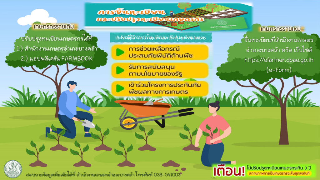 ประชาสัมพันธ์การขึ้นทะเบียนและปรับปรุงทะเบียนเกษตรกร ปี 2566 16 มีนาคม 2023 admin_cha ข่าวสำนักงานเกษตรอำเภอบางคล้า 0