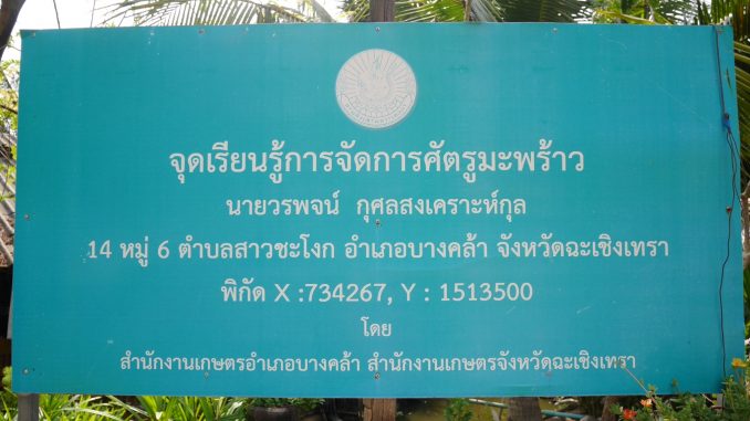 วันที่ 4 เมษายน 2566 เวลา 09.00 น.นางมัทยา สุนทรวาทิน นักวิชาการส่งเสริมการเกษตรชำนาญการ รักษาราชการแทน เกษตรอำเภอบางคล้า มอบหมายให้นางสาวเสาวลักษณ์ คงทอง นักวิชาการส่งเสริมการการเกษตรปฏิบัติการ และนางสาววิภาดา แดงมา นักวิชาการส่งเสริมการเกษตร ลงพื้นที่ติดตามการดำเนินงานของศูนย์จัดการศัตรูพืชชุมชน ตำบลสาวชะโงก เพื่อสำรวจการระบาดของแมลงศัตรูพืชในพื้นที่ และเตรียมความพร้อมด้านข้อมูลในการประกวดวิสาหกิจชุมชนดีเด่น ระดับจังหวัด ประจำปี 2566 โดยมีนายยงยุทธ กุศลสงเคราะห์กุล ประธานศูนย์ฯ ให้การต้อนรับ ณ ศูนย์จัดการศัตรูพืชชุมชน ตำบลสาวชะโงก อำเภอบางคล้า จังหวัดฉะเชิงเทรา#งานตามระบบส่งเสริมการเกษตร#สำนักงานเกษตรจังหวัดฉะเชิงเทรา#สำนักงานเกษตรอำเภอบางคล้า#ศูนย์จัดการศัตรูพืชชุมชน