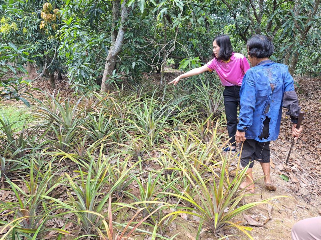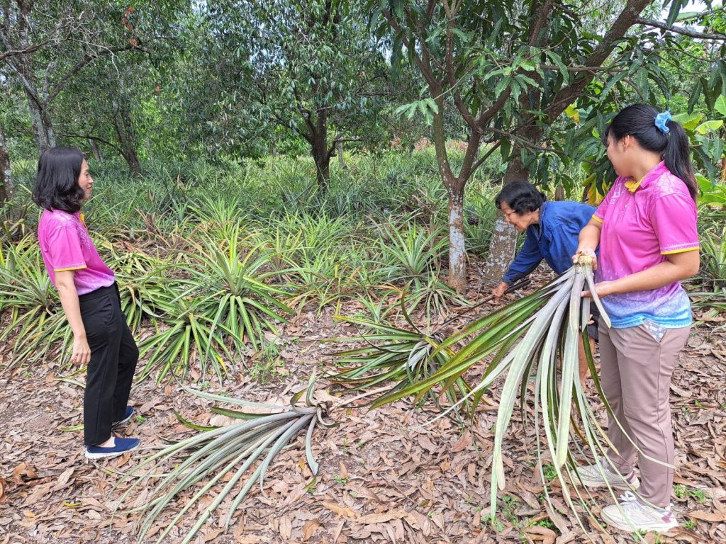 วันที่ 1 กรกฎาคม 2568 เวลา 09.00 น.นางสาวยุวดี ฮวดวิเศษ เกษตรอำเภอบางคล้า พร้อมด้วยเจ้าหน้าที่สำนักงานเกษตรอำเภอบางคล้า ลงพื้นที่เยี่ยมเยียนเกษตรกรตามระบบส่งเสริมการเกษตร (T&V System) เพื่อติดตามและให้คำแนะนำแก่นางสาวสมศรี อึ้งเจริญ เกษตรกรผู้ปลูกสับปะรดพันธุ์อินทรชิต พร้อมรับฟังข้อมูลสถานการณ์การผลิตสับปะรดพันธุ์อินทรชิตจากเกษตรกรโดยตรง รวมถึงสอบถามถึงปัญหา อุปสรรค และความต้องการในการส่งเสริมและพัฒนาการผลิตสับปะรด เพื่อให้การสนับสนุนเป็นไปอย่างตรงจุดและมีประสิทธิภาพ โดยได้มีการให้คำแนะนำเพิ่มเติมเกี่ยวกับการจัดการแปลงอย่างถูกวิธี การใช้เทคโนโลยีที่เหมาะสมในการผลิต และการเชื่อมโยงเครือข่ายเกษตรกร เพื่อแลกเปลี่ยนความรู้และประสบการณ์ ซึ่งจะช่วยยกระดับคุณภาพชีวิตและรายได้ของเกษตรกรในพื้นที่ ให้ดียิ่งขึ้น พร้อมกับเป็นแนวทางในพัฒนาภาคการเกษตรของอำเภอบางคล้าให้มีความเข้มแข็งและยั่งยืนต่อไป