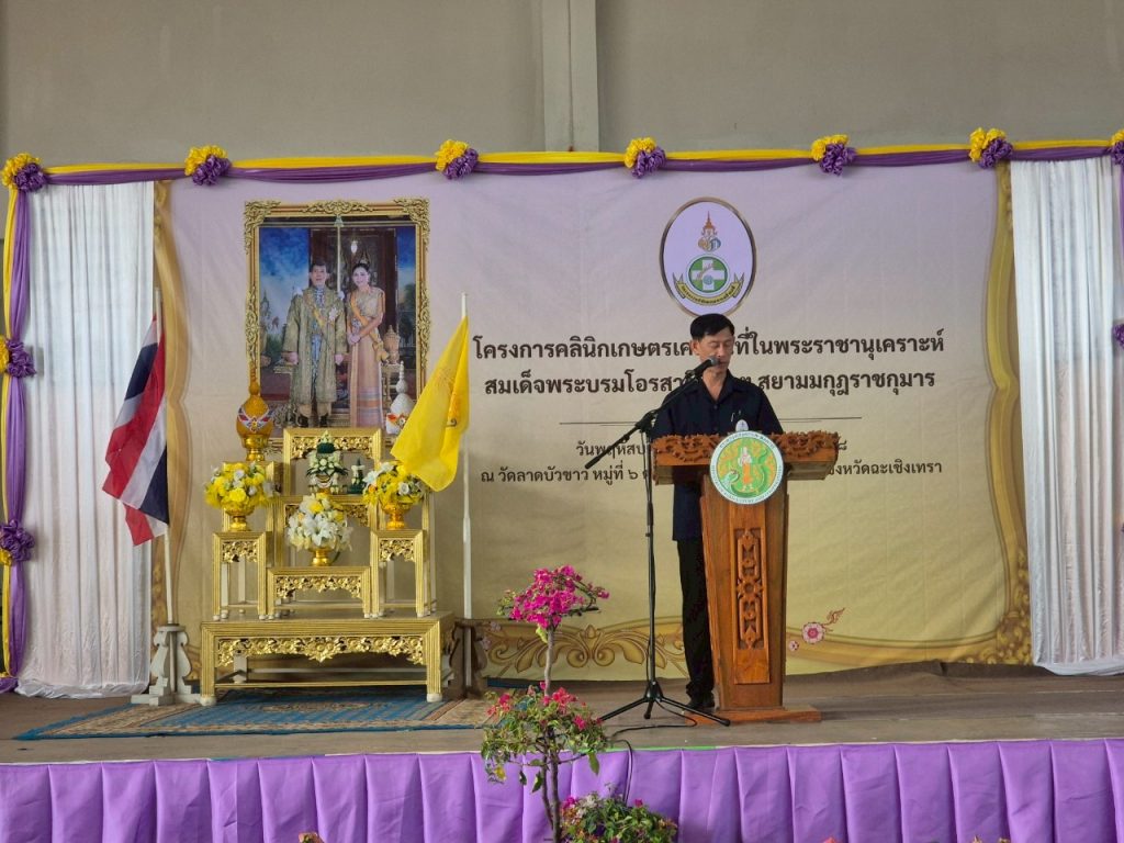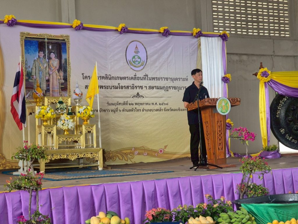 วันที่ 22 พฤษภาคม 2568 เวลา 08.00 น. นางสาวยุวดี ฮวดวิเศษ เกษตรอำเภอ บางคล้า พร้อมด้วยเจ้าหน้าที่สำนักงานเกษตรอำเภอบางคล้า ร่วมกับสำนักงานเกษตรจังหวัดฉะเชิงเทรา นำโดยนายดนัย ปัญจพิทยากุล เกษตรจังหวัดฉะเชิงเทรา จัดโครงการคลินิกเกษตรเคลื่อนที่ในพระราชานุเคราะห์ สมเด็จพระบรมโอรสาธิราช ฯ สยามมกุฎราชกุมารไตรมาส 3 ประจำปีงบประมาณ พ.ศ. 2568 โดยได้รับเกียรติจากนายประสิทธิ์ อินทโชติ รองผู้ว่าราชการจังหวัดฉะเชิงเทรา เป็นประธานในพิธีเปิดงาน พร้อมด้วยหน่วยงานในสังกัดกระทรวงเกษตรและสหกรณ์ และหน่วยงานบูรณาการภาครัฐ และภาคเอกชน ร่วมให้บริการแก่เกษตรกร ณ อาคารเอนกประสงค์ วัดลาดบัวขาว หมู่ที่ 6 ตำบลหัวไทร อำเภอบางคล้า จังหวัดฉะเชิงเทรา