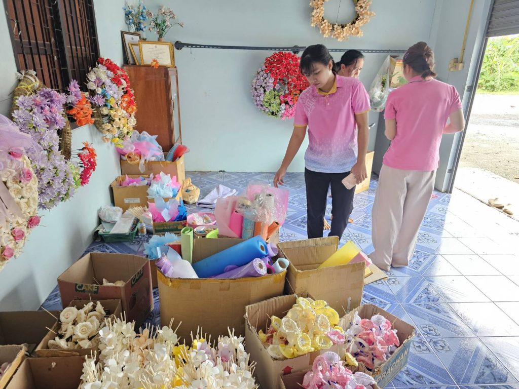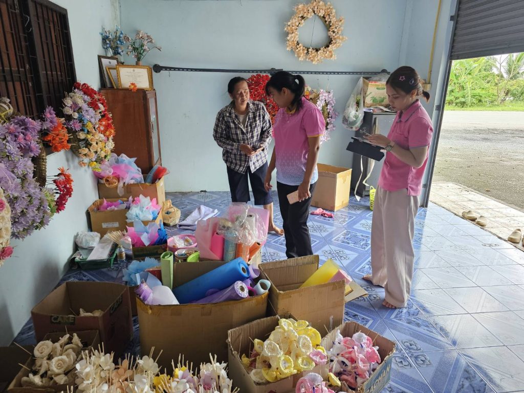 วันที่ 10 มิถุนายน 2568 เวลา 09.00 น.นางสาวยุวดี ฮวดวิเศษ เกษตรอำเภอบางคล้า มอบหมายให้นางสาวเสาวลักษณ์ คงทอง นักวิชาการส่งเสริมการเกษตรปฏิบัติการ และนางสาวปาริษา เพียเอีย นักวิชาการส่งเสริมการเกษตรปฏิบัติการ ลงพื้นที่เยี่ยมเยียนเกษตรกรตามระบบส่งเสริมการเกษตร โดยมีเป้าหมายหลักในการติดตามความก้าวหน้าการดำเนินงานของกลุ่มแม่บ้านเกษตรกรประดิษฐ์ดอกไม้จันทน์ พวงหรีดดอกไม้จันทน์ พวงหรีดผ้า และติดตามความคืบหน้าของ โครงการส่งเสริมและพัฒนาเกษตรกรและองค์กรเกษตรกร กิจกรรมสร้างความเข้มแข็งกลุ่มการผลิตด้านการเกษตร โดยเฉพาะอย่างยิ่งในกิจกรรมหลัก การเสริมสร้างและพัฒนาศักยภาพเกษตรกรและองค์กรเกษตรกร และกิจกรรมย่อย พัฒนาศักยภาพกลุ่มแม่บ้านเกษตรกรสู่ผู้ประกอบการด้านการเกษตร ประจำปีงบประมาณ พ.ศ. 2568 และร่วมพูดคุยกับสมาชิกเพื่อรับฟังปัญหา อุปสรรค ความต้องการในการพัฒนาต่อยอดผลิตภัณฑ์ เพื่อให้กลุ่มฯ สามารถดำเนินงานได้อย่างยั่งยืนและมีประสิทธิภาพยิ่งขึ้น ณ ที่ทำการกลุ่มฯ หมู่ที่ 2 ตำบลหัวไทร อำเภอ บางคล้า จังหวัดฉะเชิงเทรา