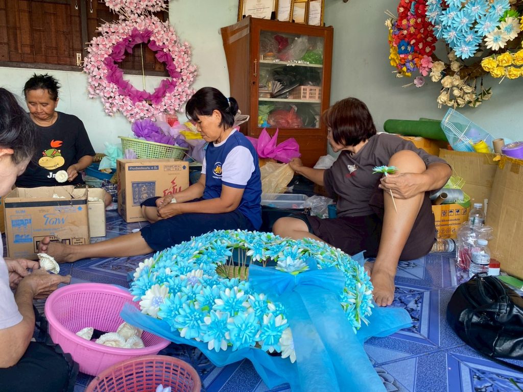 วันที่ 13 พฤศจิกายน 2568 เวลา 09.00 น. นางสาวยุวดี ฮวดวิเศษ เกษตรอำเภอบางคล้า พร้อมด้วยนางสาวปาริษา เพียเอีย นักวิชาการส่งเสริมการเกษตรปฏิบัติการ ลงพื้นที่เยี่ยมเกษตรกรตามระบบส่งเสริมการเกษตร โดยติดตามผลการดำเนินงานของ กลุ่มแม่บ้านเกษตรกรประดิษฐ์ดอกไม้จันทน์ พวงหรีดดอกไม้จันทน์ และพวงหรีดผ้า ตลอดจนให้คำแนะนำด้านการผลิต การตลาด การจัดทำบัญชีรายรับ-รายจ่ายของกลุ่ม และการพัฒนาผลิตภัณฑ์ เพื่อสร้างความเข้มแข็งและสร้างรายได้ที่มั่นคง ให้แก่กลุ่มแม่บ้านเกษตรกรในชุมชน ณ ที่ทำการกลุ่มฯ หมู่ที่ 2 ตำบลหัวไทร อำเภอบางคล้า จังหวัดฉะเชิงเทรา