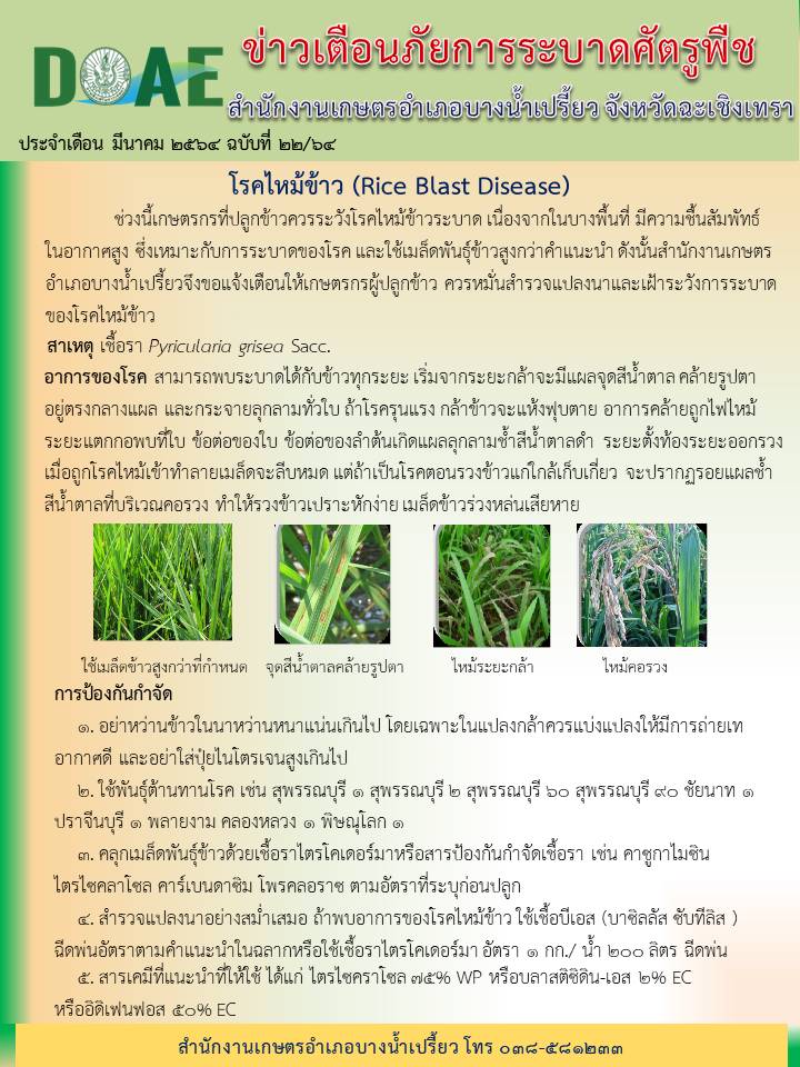 เตือนภัยการระบาดศัตรูพืช โรคไหม้ข้าว 4 มีนาคม 20214 มีนาคม 2021 admin_BNP Related Posts เตือนภัยการระบาดศัตรูพืช !!! แจ้งเตือนการระบาดโรค-แมลงศัตรูข้าว ประจำเดือน พฤศจิกายน 2567 8 พฤศจิกายน 202429 พฤศจิกายน 2024 admin_BNP เตือนภัยการระบาดศัตรูพืช !!! แจ้งเตือนการระบาดแมลงศัตรูพืชมะพร้าว ประจำเดือนพฤศจิกายน 2567 4 พฤศจิกายน 202429 พฤศจิกายน 2024 admin_BNP