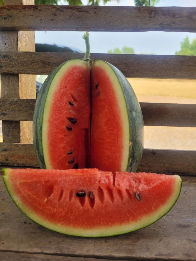 วันที่ 2 พฤษภาคม 2567 นายณรงค์ ภัทรขวัญ เกษตรอำเภอบางน้ำเปรี้ยว มอบหมายให้นางสมพิศ รัตนกำเนิด นักวิชาการส่งเสริมการเกษตร ลงพื้นที่ในการติดตามและเยี่ยมเยียนเกษตรกร ตามระบบส่งเสริมการเกษตร (T&V System ) ติดตามให้คำแนะนำ การปลูกพืชใช้น้ำน้อยเสริมสร้างรายได้แก่เกษตรกร ของนายสมเดช ใยเยี่ยม เกษตรกรผู้ปลูกแตงโม จำนวน 1 ไร่ ในพื้นที่หมู่ที่ 10 ตำบลโยธะกา อำเภอบางน้ำเปรี้ยว จังหวัดฉะเชิงเทรา เนื่องจากสภาพอากาศที่ร้อนจัดทำให้แตงโมที่ออกมามีลูกเล็ก ผลผลิตน้อยมาก ซึ่งแตงโมเป็นพืชที่ไม่ชอบอากาศที่ร้อนจัด ส่งผลให้กับเกษตรกรเสี่ยงต่อการขาดทุนการผลิตในครั้งนี้ ทั้งนี้เกษตรกรยอมรับความเสี่ยงและเตรียมความพร้อมวางแผนการผลิตการปลูกแตงโมเร็วขึ้นเพื่อหลีกเลี่ยงสภาพอากาศที่ร้อนจัดในรอบปีต่อไป