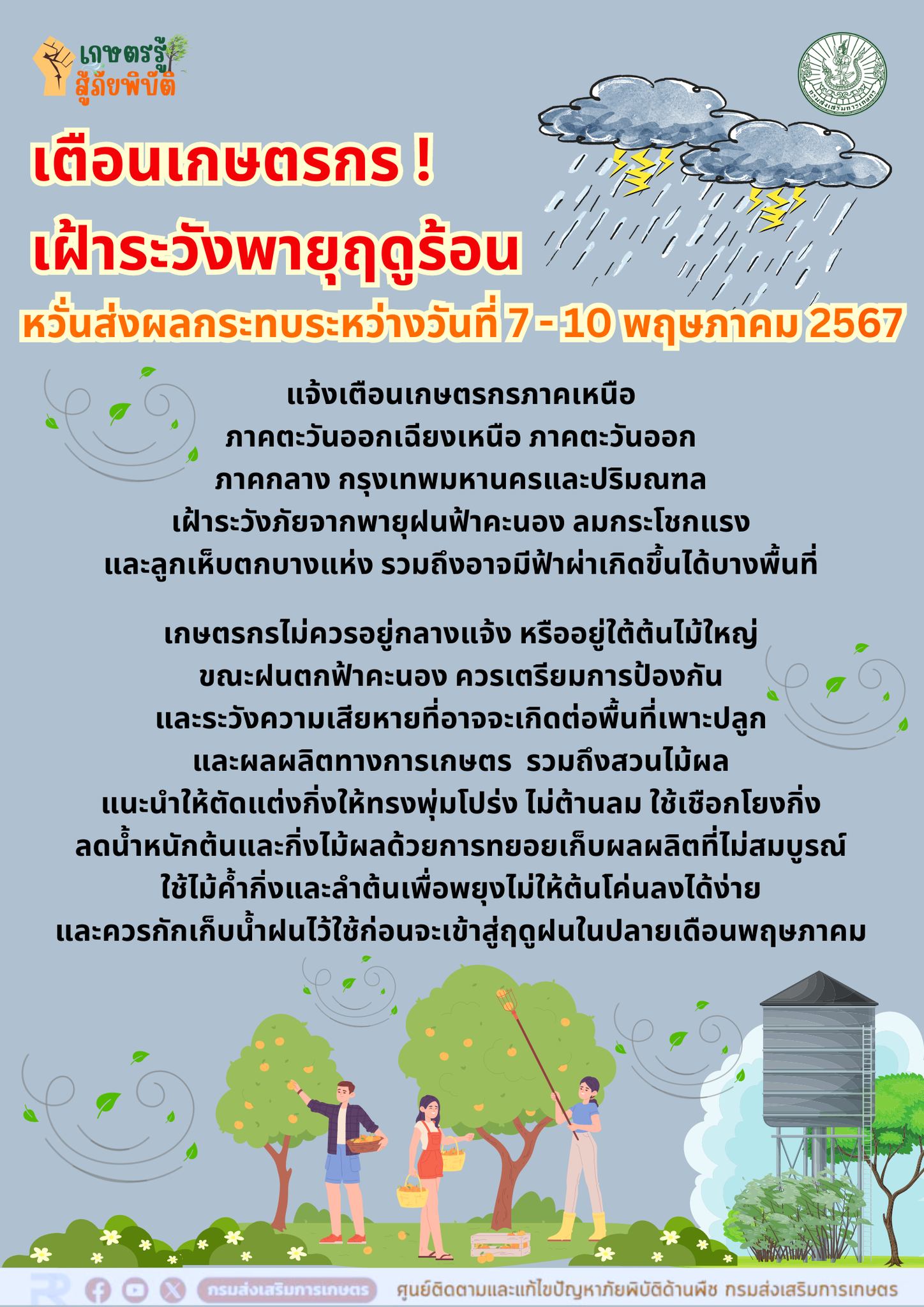เตือนภัยธรรมชาติ เตือนเกษตรกร ! เฝ้าระวังพายุฤดูร้อน มีผลกระทบระหว่างวันที่ 7 – 10 พฤษภาคม 2567 7 พฤษภาคม 20246 มิถุนายน 2024 admin_BNP Related Posts เตือนภัยธรรมชาติ ประกาศกรมอุตุนิยมวิทยา เรื่อง การเริ่มต้นฤดูฝนของประเทศไทย พ.ศ. 2567 โดยประเทศไทยได้สิ้นสุดฤดูร้อนและเริ่มต้นเข้าฤดูฝนแล้ว เมื่อวันที่ 20 พฤษภาคม 2567 21 พฤษภาคม 20246 มิถุนายน 2024 admin_BNP เตือนภัยธรรมชาติ 6 คำแนะนำ สำหรับเกษตรกรชาวสวนไม้ผล เผชิญเหตุปัญหาภัยแล้งและความร้อน 7 พฤษภาคม 20246 มิถุนายน 2024 admin_BNP