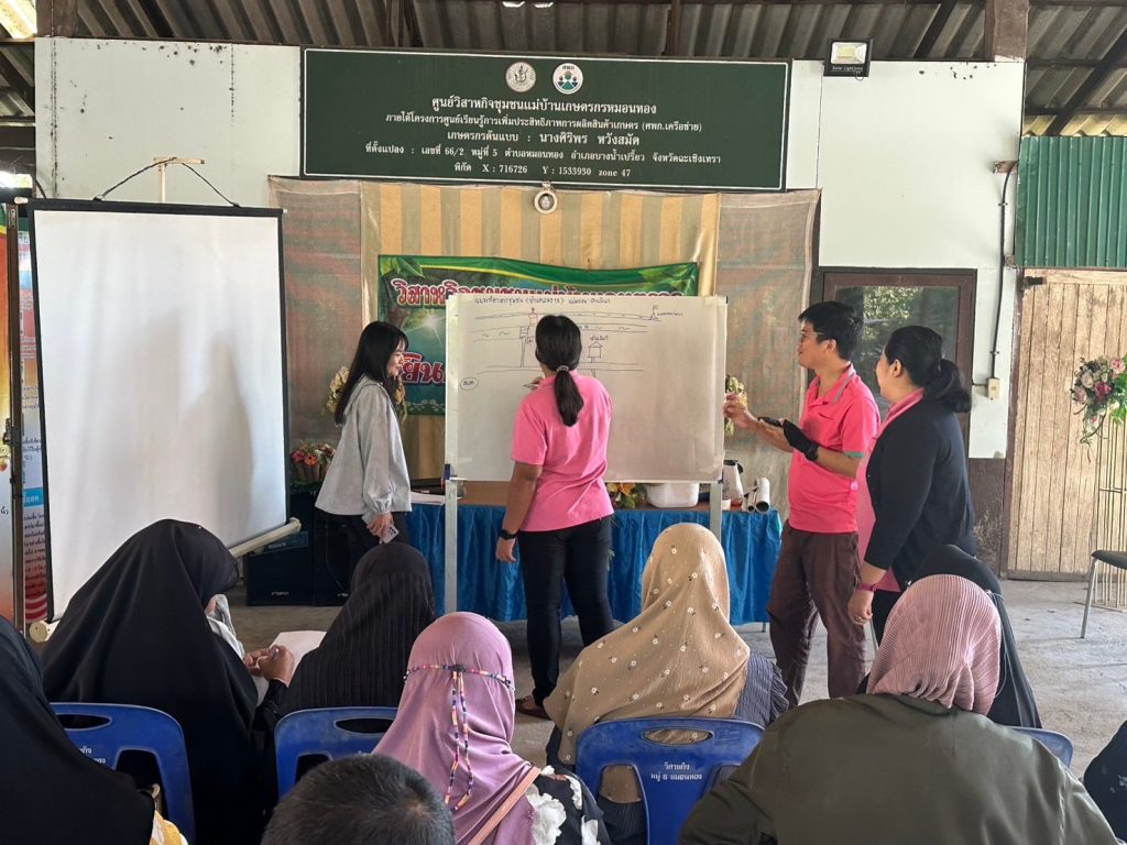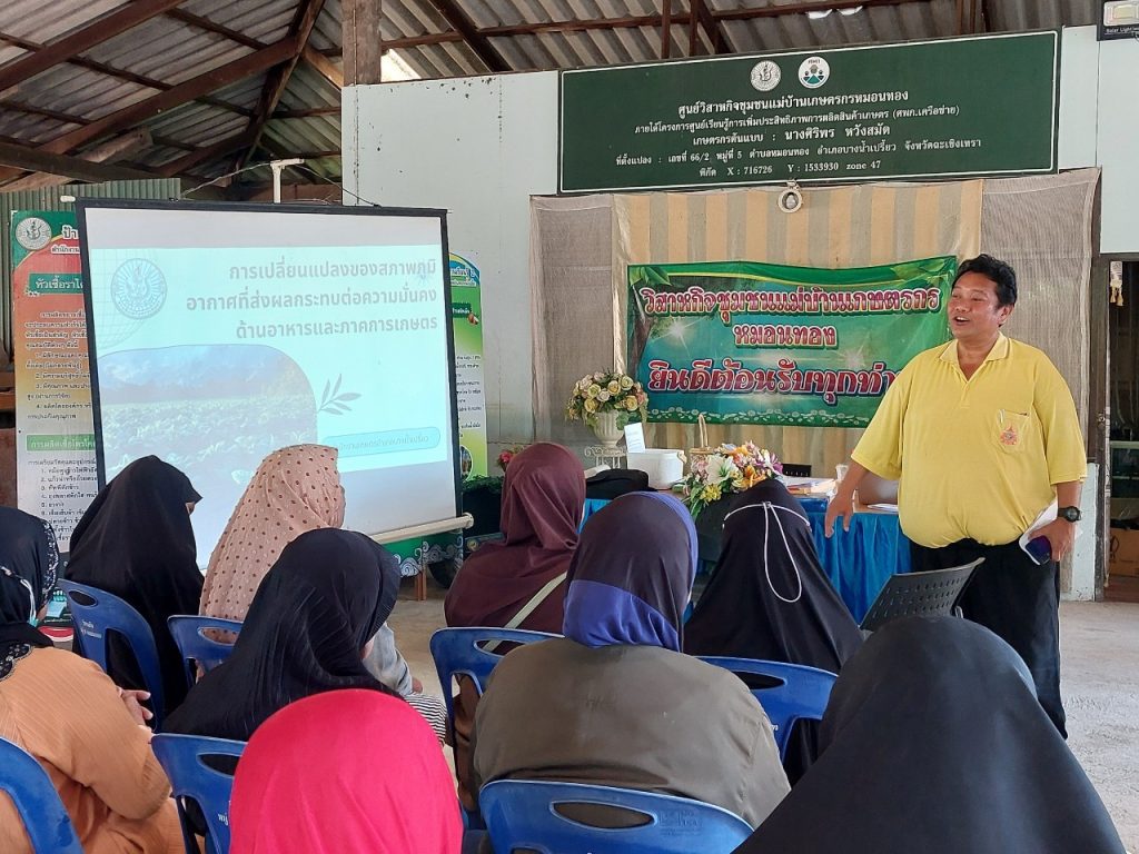 วันที่ ๒๓-๒๔ ธันวาคม ๒๕๖๗ นายณรงค์ ภัทรขวัญ เกษตรอำเภอบางน้ำเปรี้ยว พร้อมด้วยเจ้าหน้าที่สำนักงานเกษตรอำเภอบางน้ำเปรี้ยว ร่วมกันดำเนินการอบรมโครงการส่งเสริมและพัฒนาเกษตรกรและองค์กรเกษตรกร ปีงบประมาณ พ.ศ. ๒๕๖๘ กิจกรรมสร้างความเข้มแข้งกลุ่มการผลิตด้านการเกษตร กิจกรรมย่อย ส่งเสริมความมั่นคงด้านอาหาร เพื่อการบริโภคในครัวเรือนเกษตรกรและชุมชนโดยมีวัตถุประสงค์เพื่อส่งเสริมความมั่นคงด้านอาหารในครัวเรือนและชุมชนให้มีอาหารปลอดภัยบริโภคเพียงพอ สามารถลดความเสี่ยงการขาดแคลนอาหารจากภาวะวิกฤตต่างๆ ณ กลุ่มแม่บ้านเกษตรกรหมอนทอง หมู่ที่ ๕ ตำบลหมอนทอง อำเภอบางน้ำเปรี้ยว จังหวัดฉะเชิงเทรา