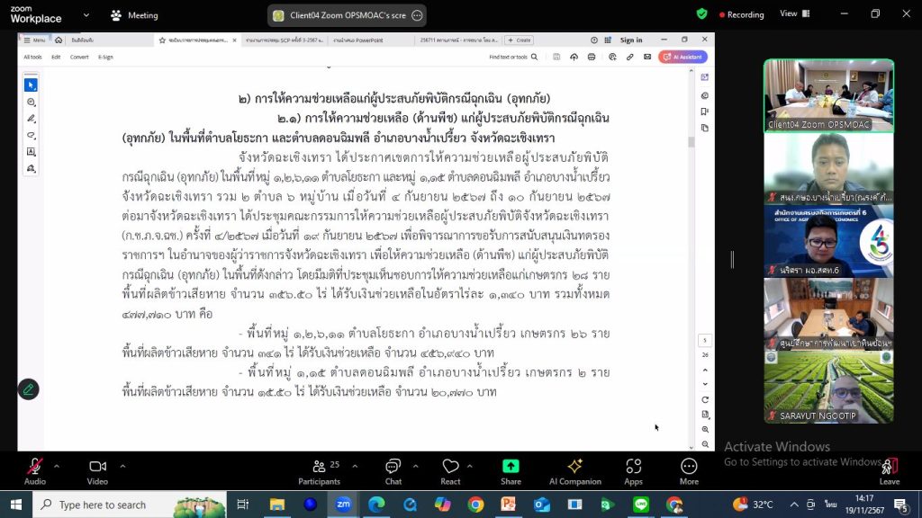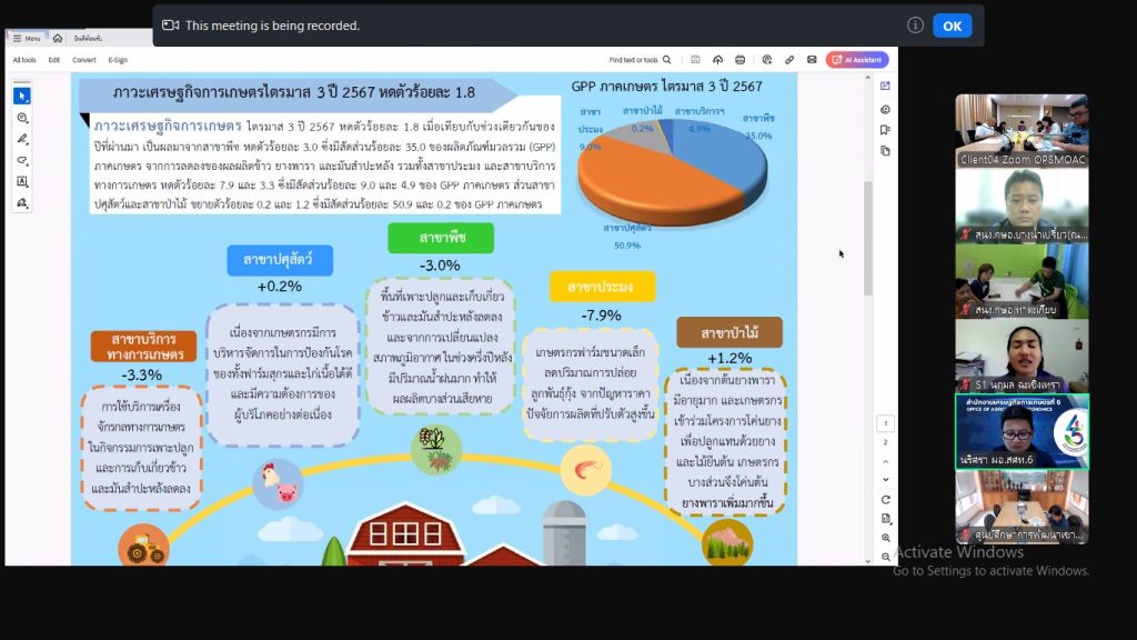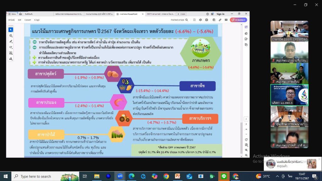 วันที่ 19 พฤศจิกายน 2567 นายณรงค์ ภัทรขวัญ เกษตรอำเภอบางน้ำเปรี้ยว เข้าร่วมประชุมคณะกรรมการขับเคลื่อนงานด้านการเกษตรระดับจังหวัดฉะเชิงเทรา ครั้งที่ 4/2567 ผ่านระบบ Zoom meeting เพื่อให้การขับเคลื่อนงานด้านการเกษตรในระดับพื้นที่เป็นไปตามนโยบายของรัฐบาล รวมถึงนโยบายของกระทรวงเกษตรและสหกรณ์ โดยมีการบูรณาการร่วมกันทั้งในระดับจังหวัด และระดับอำเภอ เพื่อให้การดำเนินงานเป็นไปอย่างมีประสิทธิภาพ ณ สำนักงานเกษตรอำเภอบางน้ำเปรี้ยว จังหวัดฉะเชิงเทรา