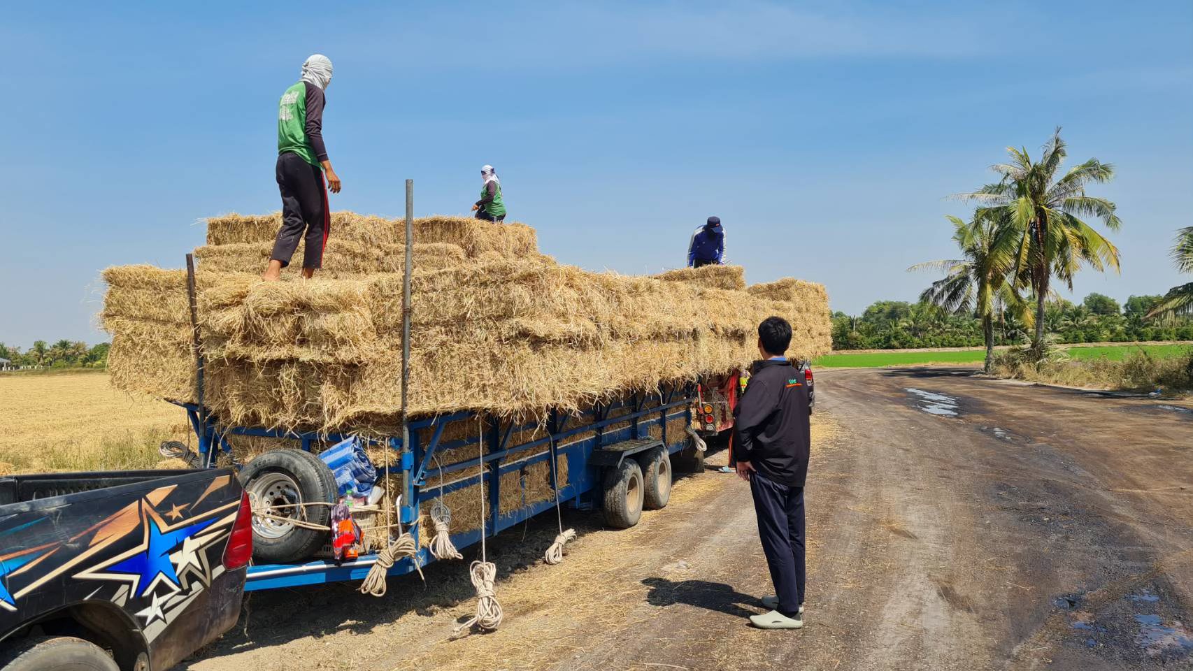 วันที่ 7 กุมภาพันธ์ 2568 นายณรงค์ ภัทรขวัญ เกษตรอำเภอบางน้ำเปรี้ยว มอบหมายให้ นายนันทวัชร์ บุษราคัม นักวิชาการส่งเสริมการเกษตรปฏิบัติการ ลงพื้นที่ติดตามการจัดการเศษวัสดุเหลือใช้ทางการเกษตร(ฟางข้าว) แทนการเผาในพื้นที่ตำบลโพรงอากาศ พร้อมทั้งลงพื้นที่ประชาสัมพันธ์สร้างการรับรู้ มาตรการต่างๆ รวมถึงข้อกฎหมายที่เกี่ยวข้องกับการเผา และการลดฝุ่นละอองขนาดเล็ก PM 2.5 พบว่าเกษตรกรมีการจัดการเศษวัสดุเหลือใช้ทางการเกษตร โดยมีผู้ที่รับจ้างอัดฟางเข้ามาอัดฟางก้อนในพื้นที่อำเภอบางน้ำเปรี้ยว โดยทางเกษตรกรจะได้รับเงินค่าฟางอัดก้อนราคา 5 บาท/ก้อน ผู้ที่รับจ้างอัดฟางก็จะส่งต่อให้กับทางพ่อค้าคนกลาง ในราคา 30-35 บาท/ก้อน เพื่อส่งฟางอัดก้อนไปยังโซนอำเภอปากช่อง จังหวัดนครราชสีมาเพื่อใช้ในอุตสาหกรรมอาหารสัตว์ ณ พื้นที่หมู่ 11 ตำบลโพรงอากาศ อำเภอบางน้ำเปรี้ยว จังหวัดฉะเชิงเทรา