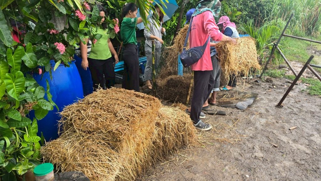 วันที่ 14 พฤษภาคม 2568 นายณรงค์ ภัทรขวัญ เกษตรอำเภอบางน้ำเปรี้ยว มอบหมายให้เจ้าหน้าที่สำนักงานเกษตรอำเภอบางน้ำเปรี้ยว เข้าร่วมการดำเนินกิจกรรมของกลุ่มเกษตรชีวภัณฑ์ 17 โครงการหมู่บ้านปลอดขยะอินทรีย์ต้นแบบ (Zero Waste ) ประจำปีงบประมาณ 2568 (ต่อเนื่อง) สนับสนุนงบประมาณโดยสถานีพัฒนาที่ดินจังหวัดฉะเชิงเทรา ซึ่งมีการนำเศษวัสดุเหลือใช้ทางการเกษตร ของเหลือจากชุมชน ครัวเรือน มาหมุนเวียนใช้ผลิตน้ำหมักชีวภาพ และปุ๋ยหมัก ทำให้หมู่บ้านภายใต้โครงการสามารถนำไปใช้ประโยชน์ทางการเกษตร ลดต้นทุนการผลิต อีกทั้งยังสามารถลดการเผาวัสดุเหลือใช้ทางการเกษตร สร้างความเข้มแข็งและคุณภาพชีวิตที่ดีขึ้นให้กับเกษตรกรได้อย่างยั่งยืน ณ กลุ่มเกษตรชีวภัณฑ์ 17 หมู่ที่ 10 ตำบลโยธะกา อำเภอบางน้ำเปรี้ยว จังหวัดฉะเชิงเทรา