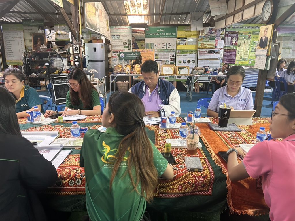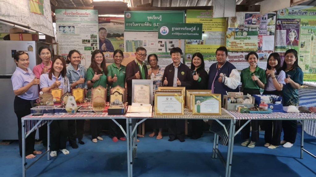 วันที่ 8 กรกฎาคม 2568 นายณรงค์ ภัทรขวัญ เกษตรอำเภอบางน้ำเปรี้ยว พร้อมด้วย เจ้าหน้าที่สำนักงานเกษตรอำเภอบางน้ำเปรี้ยว ลงพื้นที่ให้การต้อนรับเจ้าหน้าที่จากสำนักงานส่งเสริมและพัฒนาการเกษตรที่ 3 จังหวัดระยอง และเจ้าหน้าที่สำนักงานเกษตรจังหวัดฉะเชิงเทรา ในการลงติดตามการดำเนินงานของศูนย์เรียนรู้การเพิ่มประสิทธิภาพการผลิตสินค้าเกษตร ณ ศูนย์เรียนรู้การเพิ่มประสิทธิภาพการผลิตสินค้าเกษตรอำเภอบางน้ำเปรี้ยว จังหวัดฉะเชิงเทรา เพื่อติดตามการขับเคลื่อนการดำเนินงานของ ศพก. ให้เกิดประสิทธิภาพสามารถเป็นศูนย์กลางในการถ่ายทอดเทคโนโลยีการผลิต การบริหารจัดการ และการตลาดแก่เกษตรกร รวมทั้งการให้บริการทางการเกษตร เผยแพร่ข้อมูลข่าวสารในพื้นที่ และเป็นกลไกในการบูรณาการการทำงานของหน่วยงานในการแก้ไขปัญหาและพัฒนาการเกษตรในพื้นที่ต่อไป ณ หมู่ที่ 4 ตำบลดอนเกาะกา อำเภอ บางน้ำเปรี้ยว จังหวัดฉะเชิงเทรา