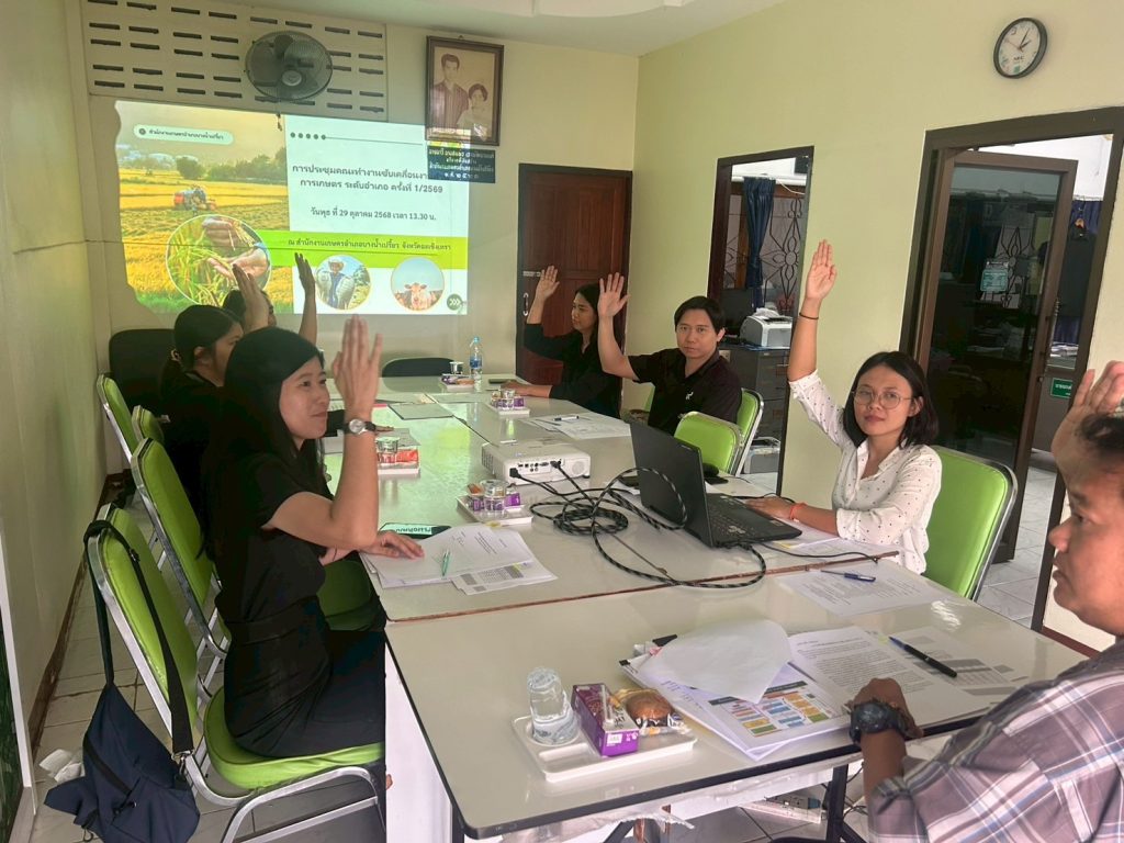 วันที่ 29 ตุลาคม 2568 เวลา 13.30 น. นายณรงค์ ภัทรขวัญ เกษตรอำเภอบางน้ำเปรี้ยว พร้อมด้วยเจ้าหน้าที่สำนักงานเกษตรอำเภอบางน้ำเปรี้ยว ดำเนินการจัดการประชุมคณะทำงานขับเคลื่อนงานด้านการเกษตรระดับอำเภอ (SCD) ครั้งที่ 1/2568 เพื่อพิจารณาผลการจัดทำปฏิทินผลผลิตสินค้าเกษตรรายเดือนระดับอำเภอ ประจำปี พ.ศ. 2568 ของอำเภอบางน้ำเปรี้ยว โดยที่ประชุมได้ร่วมกันทบทวน วิเคราะห์ และให้ข้อเสนอแนะต่อข้อมูลผลผลิตทางการเกษตรสำคัญของอำเภอ เพื่อให้ปฏิทินดังกล่าวมีความถูกต้องและเป็นปัจจุบันที่สุด ซึ่งจะใช้เป็นข้อมูลสำคัญในการวางแผนการผลิตและการบริหารจัดการสินค้าเกษตรในพื้นที่ต่อไป