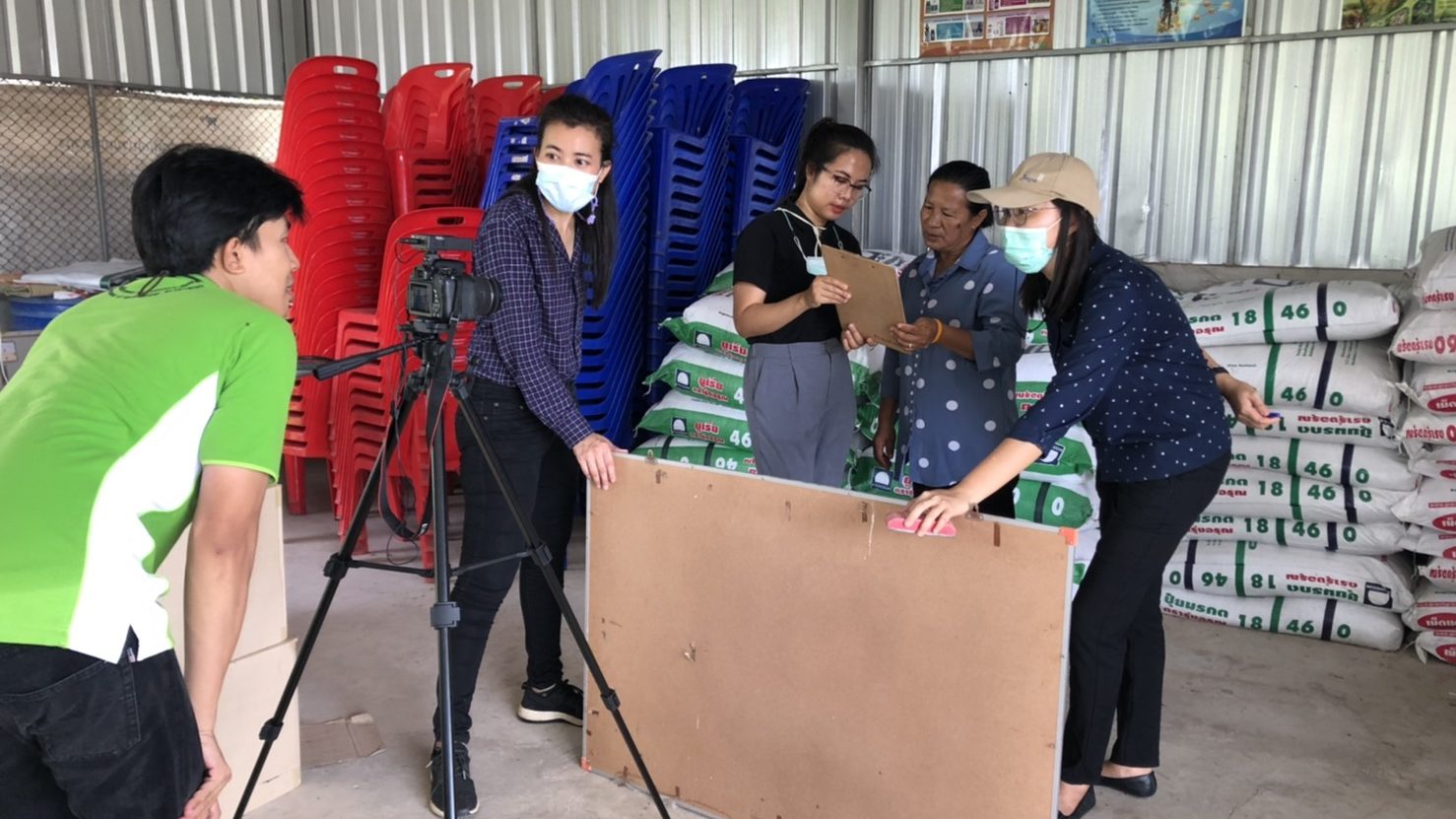 วันที่ 19 พฤษภาคม 2564 นายนิยม ขันแก้ว เกษตรอำเภอบางน้ำเปรี้ยว พร้อมด้วยนางสาวนฤนารถ อินสว่าง และนางสาวปิยาภรณ์ มฤคพันธุ์ นักวิชาการส่งเสริมการเกษตรปฏิบัติการ ร่วมกับกลุ่มอารักขาพืช สำนักงานเกษตรจังหวัดฉะเชิงเทรา และนายศุภมิตร ส่องแสงจันทร์ นักวิชาการส่งเสริมการเกษตรปฏิบัติการ กลุ่มยุทธศาสตร์และสารสนเทศ สำนักงานเกษตรจังหวัดฉะเชิงเทรา ลงพื้นที่ถ่ายทำวีดิทัศน์ประชาสัมพันธ์การดำเนินงานโครงการพัฒนาธุรกิจบริการดินและปุ๋ยเพื่อชุมชน (One Stop Service) ณ ศูนย์จัดการดินปุ๋ยชุมชนตำบลดอนเกาะกา อำเภอบางน้ำเปรี้ยว จังหวัดฉะเชิงเทรา