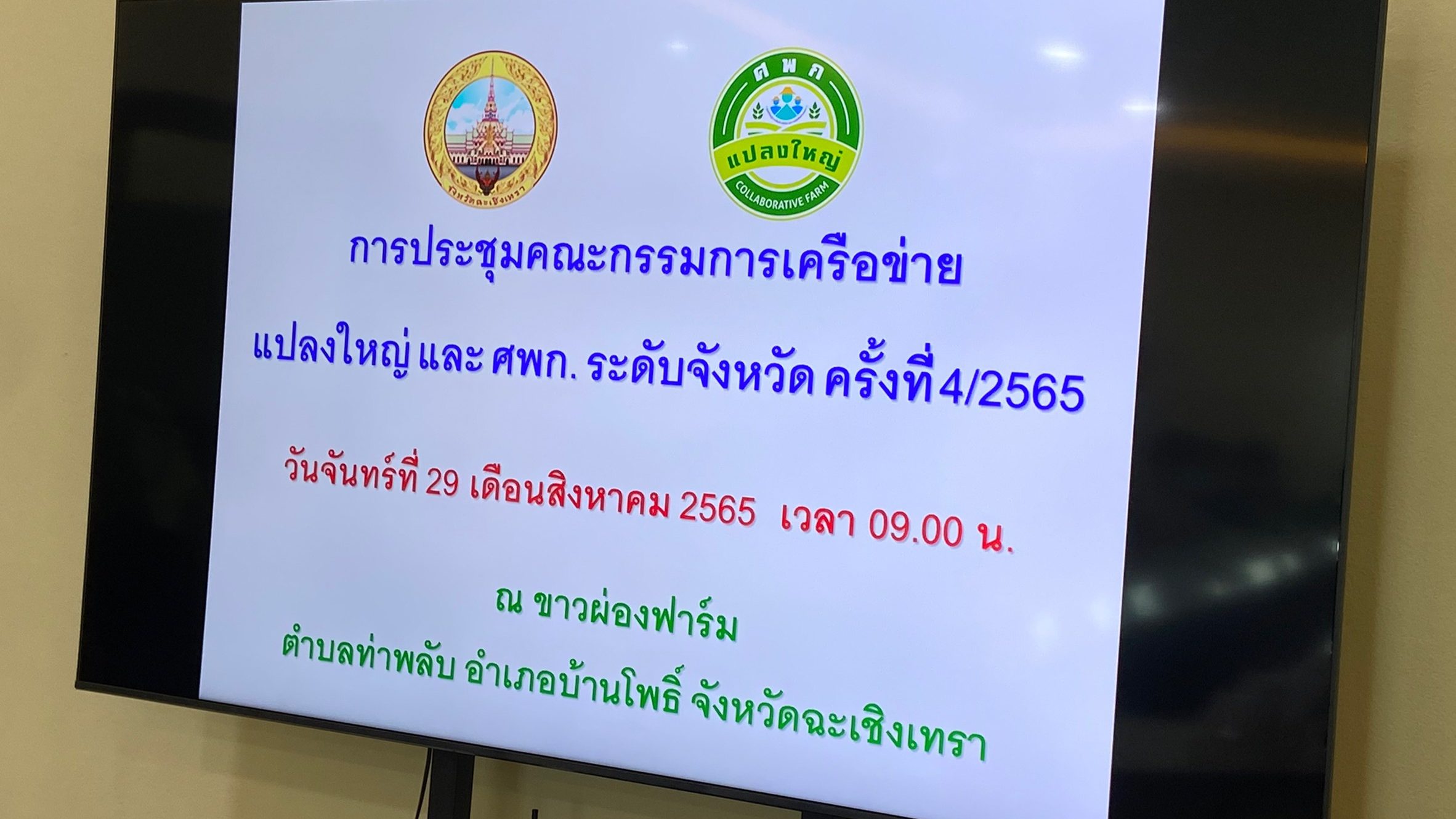 วันที่ 29 สิงหาคม 2565 นางวิภา ปักกาสาตัง เกษตรอำเภอบางน้ำเปรี้ยว มอบหมายให้นายอภิภู พัฒนยินดี นักวิชาการส่งเสริมการเกษตรชำนาญการ และนางสาวกาญจนา ลี้นะวัฒนา นักวิชาการส่งเสริมการเกษตรปฏิบัติการ พร้อมด้วยนายสุพจน์ จูเปีย ผู้แทน ศพก. อำเภอบางน้ำเปรี้ยว และนางสาวนุกูล ใหม่เจริญ ประธานแปลงใหญ่ระดับอำเภอ เข้าร่วมประชุมคณะกรรมการเครือข่ายศูนย์เรียนรู้การเพิ่มประสิทธิภาพการผลิตสินค้าเกษตร (ศพก.) และคณะกรรมการเครือข่ายแปลงใหญ่ ระดับจังหวัด ครั้งที่ 4/2565 เพื่อติดตามการดำเนินงาน เชื่อมโยงการขับเคลื่อนงาน ศพก. และแปลงใหญ่ ในจังหวัดฉะเชิงเทรา ให้เกิดการทำงานร่วมกันอย่างมีประสิทธิภาพ โดยมีนายดนัย ปัญจพิทยากุล เกษตรจังหวัดฉะเชิงเทรา เป็นประธานเปิดการประชุม ณ ขาวผ่องฟาร์ม ตำบลท่าพลับ อำเภอบ้านโพธิ์ จังหวัดฉะเชิงเทรา