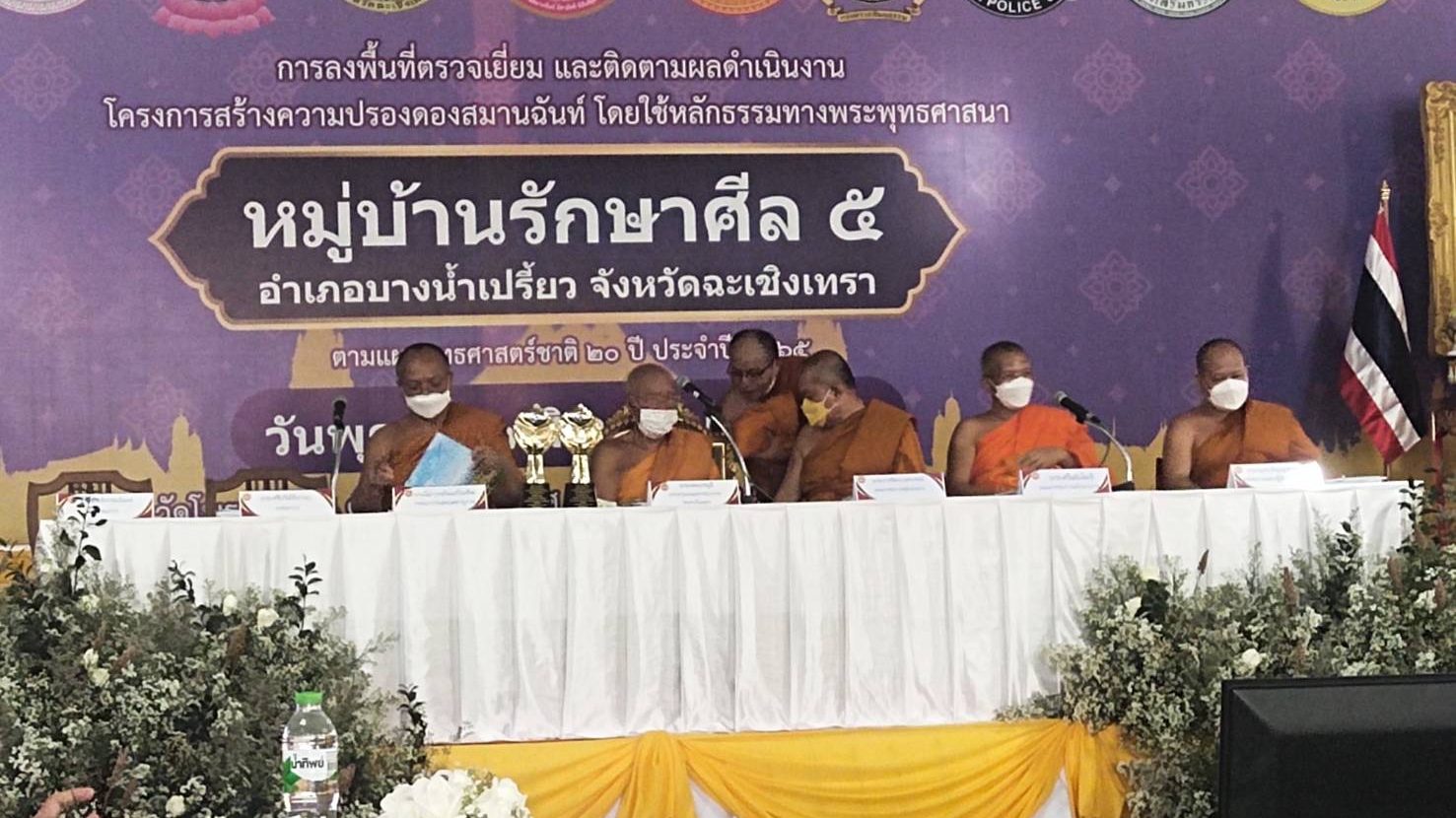 วันที่ 31 สิงหาคม 2565 นางวิภา ปักกาสาตัง เกษตรอำเภอบางน้ำเปรี้ยว มอบหมายให้นายอภิภู พัฒนยินดี นักวิชาการส่งเสริมการเกษตรชำนาญการ ร่วมต้อนรับคณะกรรมการขับเคลื่อนโครงการสร้างความปรองดองสมานฉันท์ โดยใช้หลักธรรมทางพระพุทธศาสนา “หมู่บ้านรักษาศีล 5” ประจำหนตะวันออก ในการลงพื้นที่เยี่ยมเยียนการดำเนินโครงการดังกล่าว ประจำปีงบประมาณ พ.ศ. 2565 โดยมีพระเทพวรมุนี เป็นประธานคณะกรรมการฯ ณ วัดโพรงอากาศ บ้านคลองชวดตาสี หมู่ 9 ตำบลโพรงอากาศ อำเภอบางน้ำเปรี้ยว จังหวัดฉะเชิงเทรา