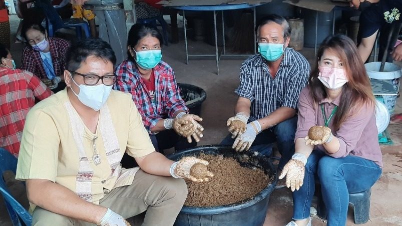 วันที่ 8 กันยายน 2565 นางวิภา ปักกาสาตัง เกษตรอำเภอบางน้ำเปรี้ยว มอบหมายให้นางสมพิศ รัตนกำเนิด นักวิชาการส่งเสริมการเกษตร ลงพื้นที่เยี่ยมเยียนเกษตรกรตามระบบส่งเสริมการเกษตร (T&V System) ในกลุ่มเกษตรชีวภัณฑ์ 17 ซึ่งมีการดำเนินกิจกรรมการผลิตเชื้อไตรโคเดอร์ม่า เพื่อใช้ในการช่วยลดปริมาณเชื้อโรคพืช ช่วยเพิ่มการเจริญเติบโตและเพิ่มผลผลิตของพืชและช่วยเพิ่มความต้านทานโรคของพืช ทำให้มีการลดต้นทุนการผลิตข้าวในรอบฤดูถัดไป รวมถึงแนะนำให้ความรู้ในการผลิต EM Ball ซึ่งจะสามารถฟื้นฟูระบบช่วยย่อยตะกอน น้ำนิ่งเน่าเสีย รวมทั้งเป็นการเพิ่มจุลินทรีย์ดีในน้ำ เมื่อคลองมีจุลินทรีย์ดีมากขึ้น ก้นคลองจะเริ่มสะอาด รวมถึงมีปริมาณออกซิเจนในน้ำเพิ่มขึ้น โดยมี นายธีรพล อุทัยพันธุ์ นายกองค์การบริหารส่วนตำบลโยธะกาและนายอามีน ง๊ะกูหลัง นักวิชาการเกษตรปฏิบัติการ ร่วมเยี่ยมเยียนการดำเนินกิจกรรมของกลุ่มในครั้งนี้ ณ ที่ทำการกลุ่มเกษตรชีวภัณฑ์ 17 หมู่ที่ 10 ตำบลโยธะกา อำเภอบางน้ำเปรี้ยว จังหวัดฉะเชิงเทรา