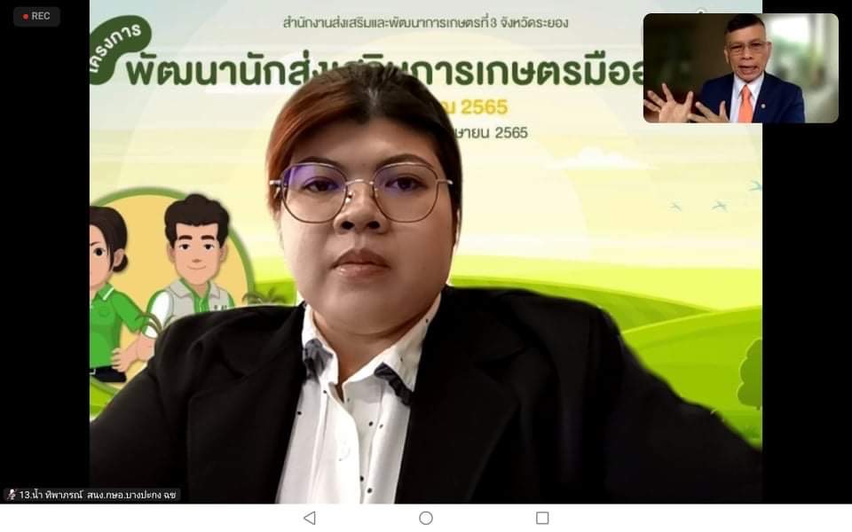 วันที่ 28 เมษายน 2565 เวลา 08.30 น. นายชัยยงค์ ชูจันทร์ เกษตรอำเภอบางปะกง มอบหมายให้นางสาวทิพาภรณ์ เต็มพร้อม นักวิชาการส่งเสริมการเกษตรปฏิบัติการ เข้าร่วมโครงการพัฒนานักส่งเสริมการเกษตรมืออาชีพ ประจำปีงบประมาณ 2565 เวทีที่ 2 ระหว่างวันที่ 27-29 เมษายน 2565 ผ่านระบบออนไลน์ Application Zoom โดยมีวัตถุประสงค์เพื่อเพิ่มทักษะในด้านการเป็นพิธีกรมืออาชีพ การเป็นวิทยากรถ่ายทอดความรู้และวิทยากรกระบวนการ ตลอดจนเสริมสร้างบุคลิกภาพและภาพลักษณ์ที่ดีให้แก่ผู้เข้ารับการฝึกอบรมให้เป็น DOAE Officer ตามนโยบายของกรมส่งเสริมการเกษตร ณ สำนักงานเกษตรอำเภอบางปะกง จังหวัดฉะเชิงเทรา