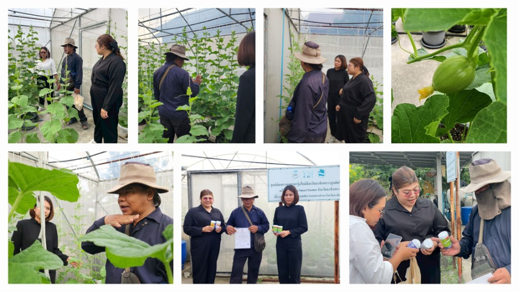 วันที่ 7 พฤศจิกายน 2568 เวลา 13.00 น. นางสาวทิพาภรณ์ เต็มพร้อม นักวิชาการส่งเสริมการเกษตรชำนาญการ รักษาราชการแทนเกษตรอำเภอบางปะกง พร้อมด้วยเจ้าหน้าที่สำนักงานเกษตรอำเภอบางปะกง ลงพื้นที่เยี่ยมเยียนสวนเมล่อนของนายจักรกฤษณ์ คล่องแคล่ว โดยได้พูดคุยแลกเปลี่ยนความรู้ด้านการผลิตเมล่อน การจัดการศัตรูพืช การดูแลคุณภาพผลผลิต และแนวทางการตลาด เพื่อส่งเสริมให้เกษตรกรสามารถพัฒนาคุณภาพผลผลิตและเพิ่มรายได้อย่างยั่งยืน ณ หมู่ที่ 5 ตำบลบางสมัคร อำเภอบางปะกง จังหวัดฉะเชิงเทรา