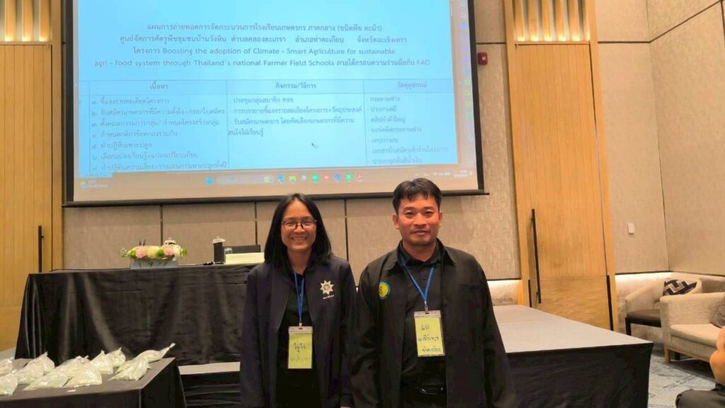 วันที่ 16 – 20 กุมภาพันธ์ 2569 นางสาววิณลดา บุญวรภัสร์ เกษตรจังหวัดฉะเชิงเทรา มอบหมายให้นางสาวทัศนีย์ ครุฑพิชัย นักวิชาการเกษตรชำนาญการ กลุ่มอารักขาพืช สำนักงานเกษตรจังหวัดฉะเชิงเทรา เข้าร่วมอบรมการพัฒนาศักยภาพวิทยากรพี่เลี้ยงกระบวนการโรงเรียนเกษตรกร (Facilitators Training workshop: TOF) ภาคกลาง โครงการ Boosting the adoption of Climate – Smart Agriculture for sustainable agri – food system through Thailand’s national Farmer Field Schools ภายใต้กรอบความร่วมมือกับ FAO (Food and Agriculture Organization of the United Nations) ประจำปีงบประมาณ พ.ศ. 2569 โดยการอบรมดังกล่าว มุ่งเน้นเพื่อพัฒนาเจ้าหน้าที่ให้มีความรู้และทักษะในการส่งเสริมการทำการเกษตรที่เป็นมิตรต่อสิ่งแวดล้อมและการปรับตัวต่อสภาพภูมิอากาศโลก โดยพัฒนาเจ้าหน้าที่ให้มีทักษะการเป็นวิทยากรกระบวนการโรงเรียนเกษตรกร และพัฒนาความรู้เทคโนโลยีนวัตกรรม เรื่อง Climate – Smart Agriculture for Sustainable Agri – food System เพื่อให้เกษตรกรสามารถทำการเกษตรที่เท่าทันต่อการเปลี่ยนแปลงสภาพภูมิอากาศ โดยใช้กระบวนการโรงเรียนเกษตรกร
