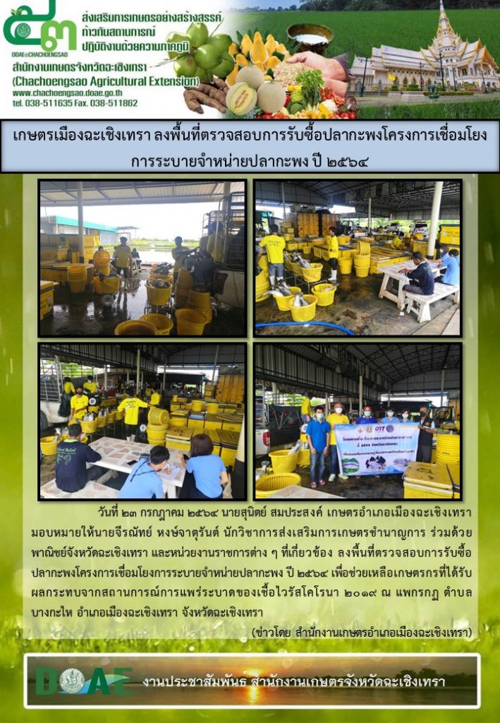 เกษตรเมืองฉะเชิงเทรา ลงพื้นที่ตรวจสอบการรับซื้อปลากะพง โครงการเชื่อมโยงการระบายจำหน่ายปลากะพง ปี 64 23 กรกฎาคม 2021 admin_cha ข่าวทั่วไป 0