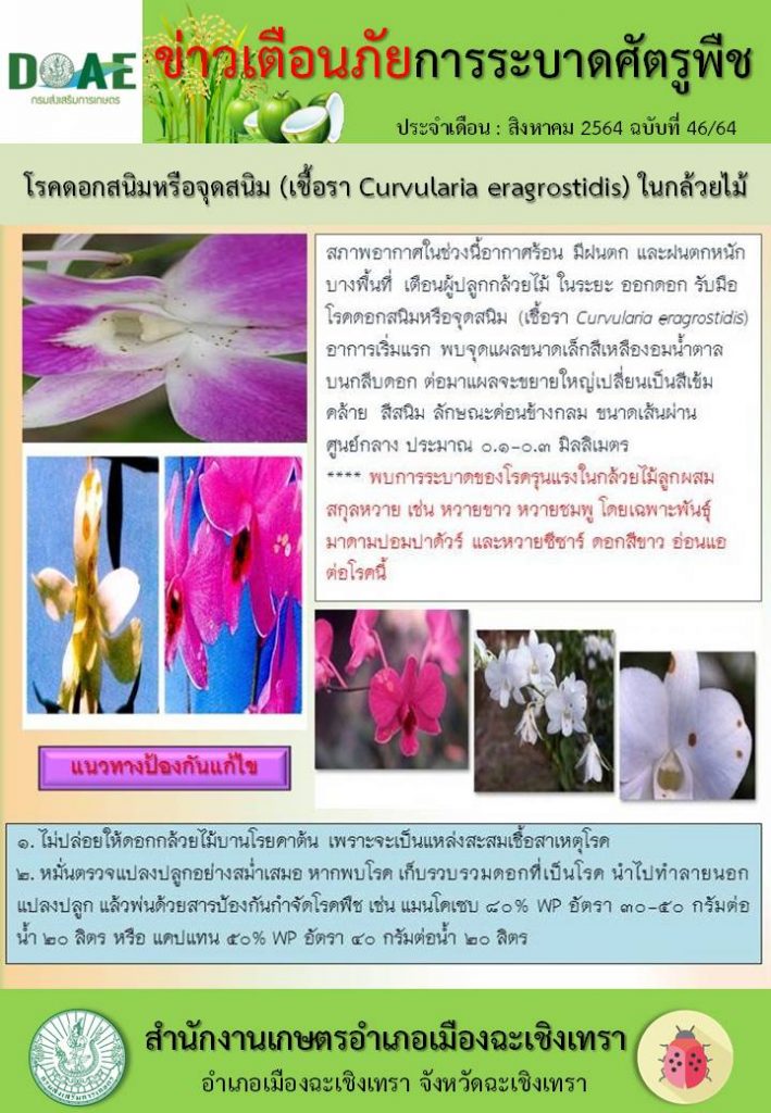 โรคดอกสนิมหรือจุดสนิม (เชื้อรา Curvularia eragrostidis) ในกล้วยไม้ 17 สิงหาคม 2021 admin_cha ข่าวเตือนภัย 0