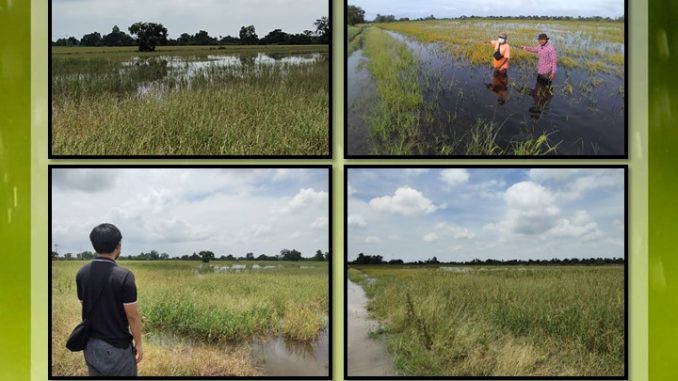 วันที่ 1 กันยายน 2564 นายสุนิตย์ สมประสงค์ เกษตรอำเภอเมืองฉะเชิงเทรา มอบหมายให้นายพีระยุทธ แก้วอิศวร นักวิชาการส่งเสริมการเกษตรปฏิบัติการ ลงพื้นที่ติดตามสถานการณ์การเก็บเกี่ยวผลผลิตข้าวนาปี 2564/65 รวมทั้งสำรวจแปลงที่ได้รับผลกระทบจาก สถาการณ์ฝนตกหนัก และสะสมเป็นเวลาหลายวันทำให้พื้นที่เพาะปลูกได้รับความเสียหายไม่สามารถเก็บเกี่ยวผลผลิตได้เต็มพื้นที่ ณ หมู่ที่ 5 ตำบลคลองหลวงแพ่ง อำเภอเมืองฉะเชิงเทรา จังหวัดฉะเชิงเทรา