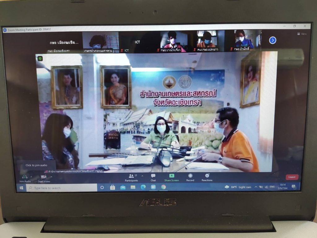 ยน 2564 นายสุนิตย์ สมประสงค์ เกษตรอำเภอเมืองฉะเชิงเทรา มอบหมายให้นายจีรณัทย์ หงษ์จาตุรันต์ นักวิชาการส่งเสริมการเกษตรชำนาญการ ร่วมประชุมเตรียมความพร้อมการจัดฝึกอบรมเกษตรกรฯผ่านระบบประชุมทางไกลออนไลน์โดยใช้ Application ZOOM Cloud Meetings เพื่อรับฟังแนวทางการดำเนินกิจกรรมฝึกอบรมเกษตรกร และละเอียดการจัดอบรม ณ สำนักงานเกษตรอำเภอเมืองฉะเชิงเทรา จังหวัดฉะเชิงเทรา(ข่าวโดย สำนักงานเกษตรอำเภอเมืองฉะเชิงเทรา)