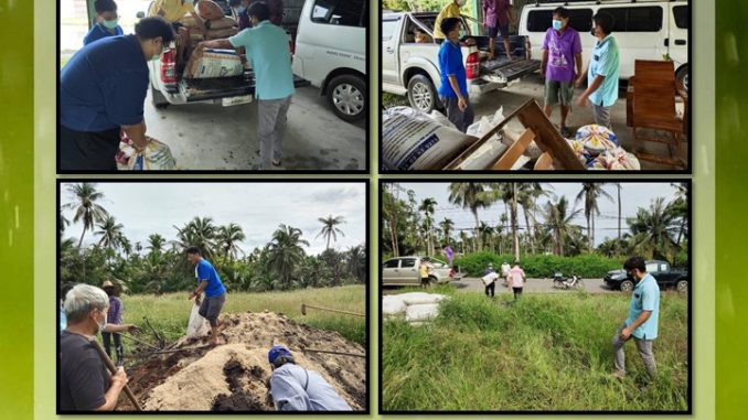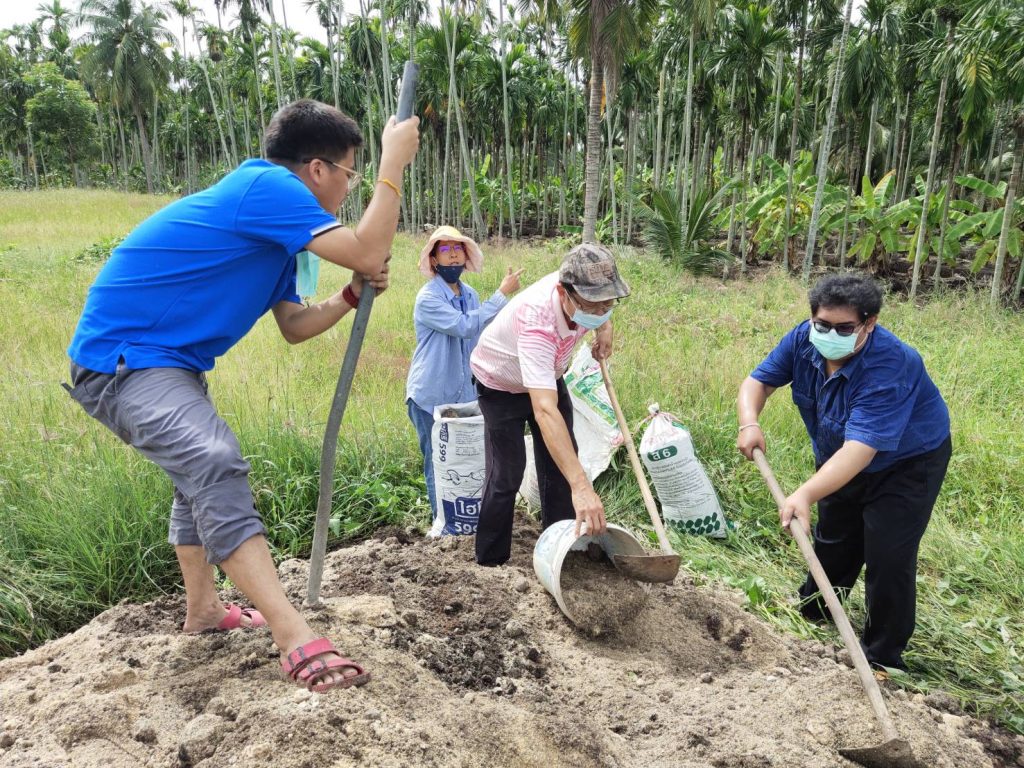 วันที่ 3 กันยายน 2564 นายสุนิตย์ สมประสงค์ เกษตรอำเภอเมืองฉะเชิงเทรา มอบหมายให้เจ้าหน้าที่สำนักงานเกษตรอำเภอเมืองฉะเชิงเทรา ส่งมอบวัสดุการเกษตรที่ได้รับสนับสนุนจากสถานีพัฒนาที่ดินฉะเชิงเทราให้แก่กลุ่มเกษตรกรแปลงใหญ่หมาก และมะพร้าวตำบลบางตีนเป็ด เพื่อใช้สำหรับการทำปุ๋ยหมักชีวภาพแจกจ่ายให้เกษตรกรภายในกลุ่มฯ รวมทั้งให้คำแนะนำวิธีการทำปุ๋ยหมักแก่เกษตรกรผู้สนใจ ณ หมู่ที่ ๑๐ ตำบลบางตีนเป็ด อำเภอเมืองฉะเชิงเทรา จังหวัดฉะเชิงเทรา