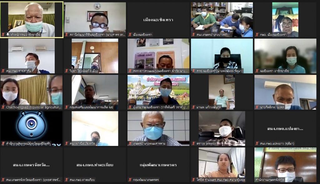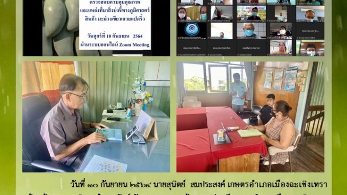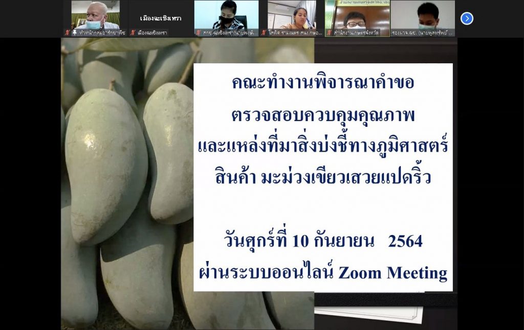วันที่ 10 กันยายน 2564 นายสุนิตย์ สมประสงค์ เกษตรอำเภอเมืองฉะเชิงเทรา พร้อมด้วยนางสาววิยดา ไชยชนันท์ ตัวแทนเกษตรกรผู้ปลูกมะม่วงเขียวเสวยอำเภอเมืองฉะเชิงเทรา เข้าร่วมประชุมคณะทำงานพิจารณาคำขอขึ้นทะเบียนสิ่งบ่งชี้ทางภูมิศาสตร์ สินค้า มะม่วงเขียวเสวยแปดริ้ว ผ่านระบบ Zoom Meeting เพื่อพิจารณาจัดทำคำขอขึ้นทะเบียนสิ่งบ่งชี้ทางภูมิศาสตร์ (Geographical Indication : GI) มะม่วงเขียวเสวยแปดริ้ว การยื่นจดทะเบียนสิ่งบ่งชี้ทางภูมิศาสตร์ให้เป็นไปตามระเบียบและข้อกฎหมายของกรมทรัพย์สินทางปัญญา กระทรวงพาณิชย์ ณ สำนักงานเกษตรอำเภอเมืองฉะเชิงเทรา จังหวัดฉะเชิงเทรา
