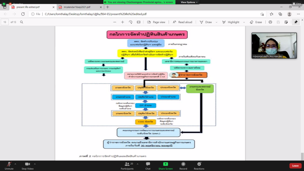 วันที่ 11 ตุลาคม 2564 นางสาวจริยา นิยมพานิช นักวิชาการส่งเสริมการเกษตรชำนาญการ รักษาการในตำแหน่งนักวิชาการส่งเสริมการเกษตรชำนาญการพิเศษ พร้อมด้วย เจ้าหน้าที่สำนักงานเกษตรอำเภอเมืองฉะเชิงเทรา ร่วมประชุมชี้แจงการจัดทำ และบันทึกข้อมูลปฏิทินสินค้าเกษตรรายเดือนระดับอำเภอประจำปี 2564 ผ่านระบบ Zoom Meeting เพื่อรับฟังกลไกการจัดทำปฏิทินสินค้าการเกษตร และขั้นตอนการกรอกข้อมูลลงในระบบบันทึกปฏิทินฯ แบบออนไลน์ ณ สำนักงานเกษตรอำเภอเมืองฉะเชิงเทรา จังหวัดฉะเชิงเทรา
