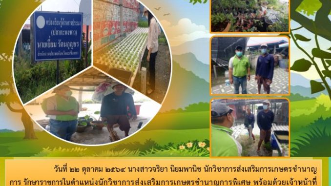 วันที่ 22 ตุลาคม 2564 นางสาวจริยา นิยมพานิช นักวิชาการส่งเสริมการเกษตรชำนาญการ รักษาราชการในตำแหน่งนักวิชาการส่งเสริมการเกษตรชำนาญการพิเศษ พร้อมด้วยเจ้าหน้าที่สำนักงานเกษตรอำเภอเมืองฉะเชิงเทรา ลงพื้นที่เยี่ยมเยียน ติดตามการดำเนินงาน ศูนย์ยกระดับการเรียนรู้การเพิ่มประสิทธิภาพการประมง นายเยี่ยม รัตนกุญชร ซึ่งเป็นศูนย์เครือข่าย ศูนย์เรียนรู้การเพิ่มประสิทธิภาพการผลิตสินค้าเกษตร (ศพก.) ของอำเภอเมืองฉะเชิงเทรา โดยได้เยี่ยมชมการแปรรูปผลผลิตจากปลากะพง และการพัฒนาศูนย์ให้เป็นแหล่งท่องเที่ยวเชิงเกษตร พร้อมทั้งแนะนำให้ดำเนินการจดทะเบียนวิสาหกิจชุมชนท่องเที่ยวเชิงเกษตรเพื่อการพัฒนาในอนาคต ณ หมู่ที่ 7 ตำบลบางเตย อำเภอเมืองฉะเชิงเทรา จังหวัดฉะเชิงเทรา