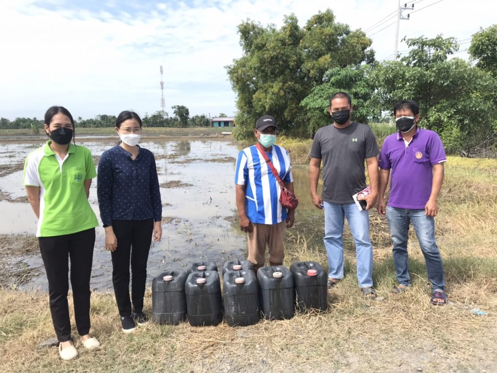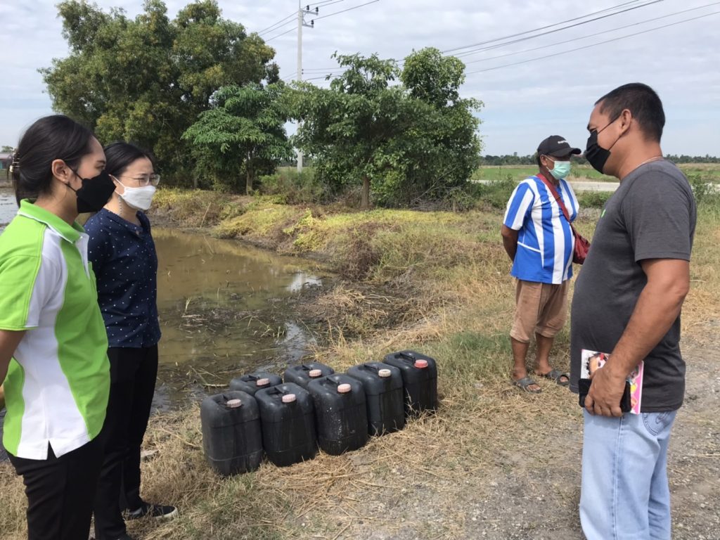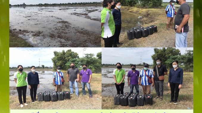 วันที่ 10 พฤศจิกายน 2564 นางสาวจริยา นิยมพานิช นักวิชาการส่งเสริมการเกษตร ชำนาญการรักษาการในตำแหน่งนักวิชาการส่งเสริมการเกษตรชำนาญการ พร้อมด้วยเจ้าหน้าที่สำนักงานเกษตรอำเภอเมืองฉะเชิงเทราร่วมกับเจ้าหน้าที่สถานีพัฒนาที่ดินฉะเชิงเทรา ลงพื้นที่สนับสนุนสารบำบัดน้ำเสียและขจัดกลิ่นเหม็น (พด.6) เพื่อใช้บำบัดน้ำเสียบริเวณพื้นที่ที่ได้รับผลกระทบจากสาธารณภัย (อุทกภัย) ณ พื้นที่ หมู่ที่ 5 ตำบลคลองหลวงแพ่ง อำเภอเมืองฉะเชิงเทรา จังหวัดฉะเชิงเทรา