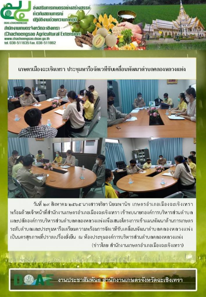 เกษตรเมืองฉะเชิงเทรา ประชุมหารือจัดเวทีขับเคลื่อนพัฒนาตำบลคลองหลวงแพ่ง 30 สิงหาคม 2022 admin_cha ข่าวทั่วไป 0
