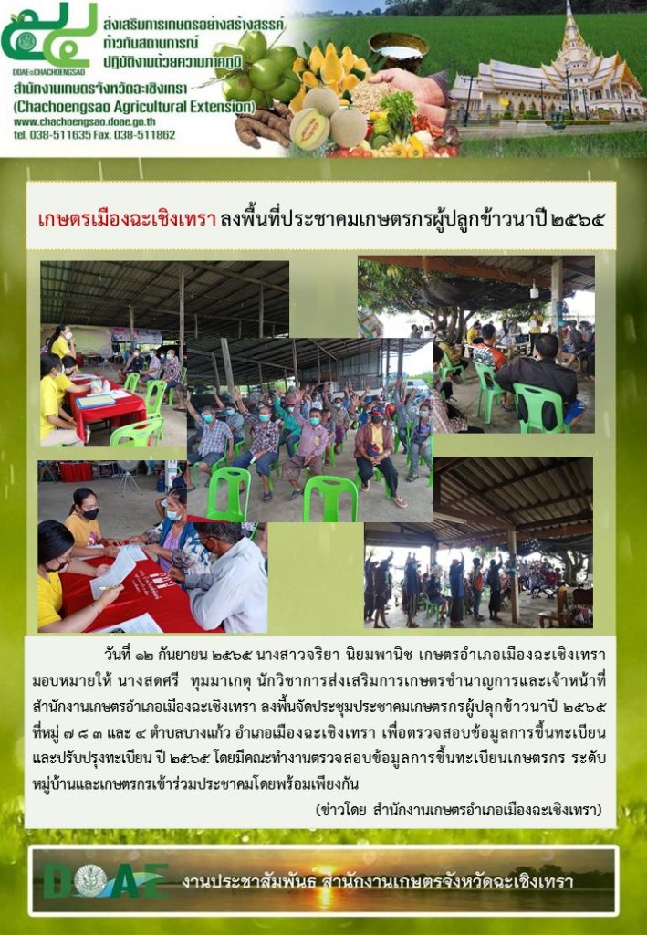เกษตรเมืองฉะเชิงเทรา ลงพื้นที่ตำบลบางแก้ว หมู่ 3-4,7-8 เพื่อตรวจสอบและประชาคมการขึ้นทะเบียนเกษตรกรผู้ปลูกข้าวนาปี 2565 14 กันยายน 2022 admin_cha ข่าวทั่วไป 0