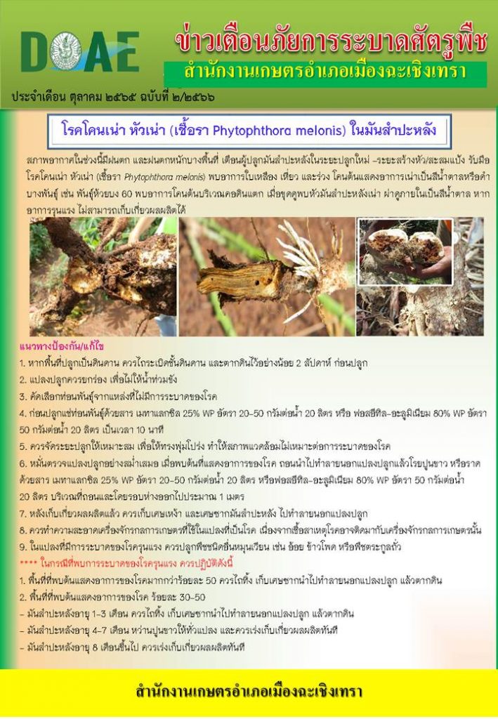 โรคโคนเน่า หัวเน่า (เชื้อรา Phytophthora melonis) ในมันสำปะหลัง 5 ตุลาคม 2022 admin_cha ข่าวเตือนภัย 0