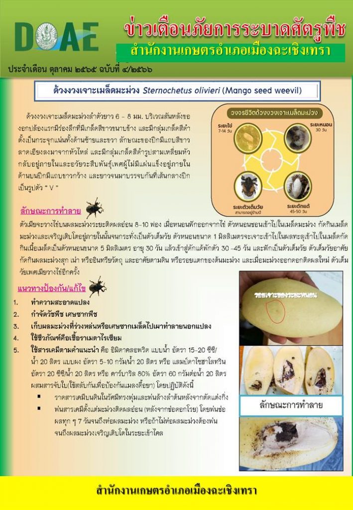 ด้วงงวงเจาะเม็ดมะม่วง Sternochetus olivieri (Mango seed weevil) 5 ตุลาคม 2022 admin_cha ข่าวเตือนภัย 0