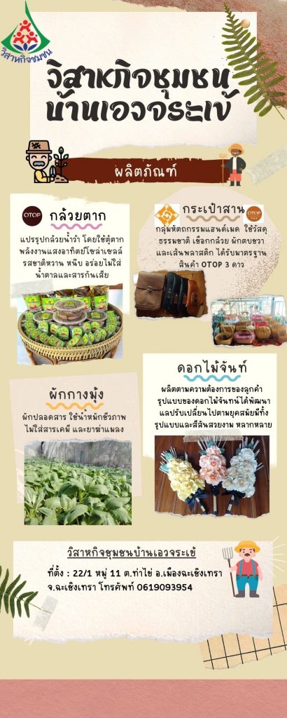 วิสาหกิจชุมชนบ้านเอวจระเข้ ตำบลท่าไข่ อำเภอเมืองฉะเชิงเทรา จังหวัดฉะเชิงเทรา 24 มกราคม 2023 admin_cha ข่าวทั่วไป 0