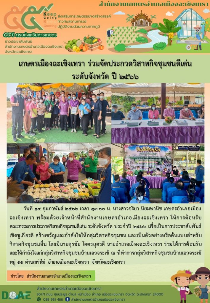 เกษตรเมืองฉะเชิงเทรา ร่วมจัดประกวดวิสาหกิจชุมชนดีเด่นระดับจังหวัด ปี 2566 15 กุมภาพันธ์ 2023 admin_cha ข่าวทั่วไป 0