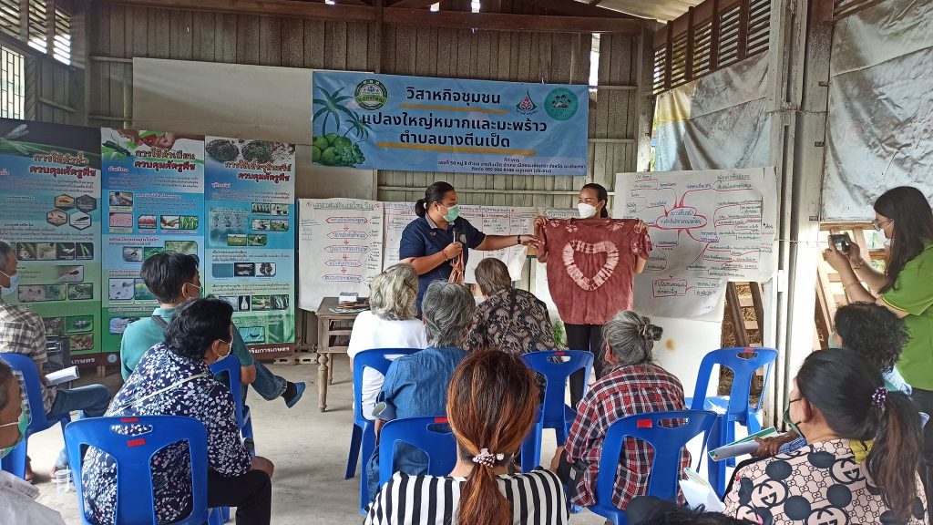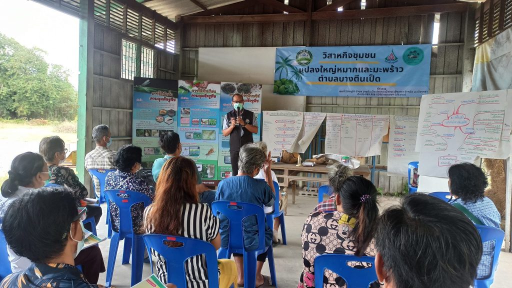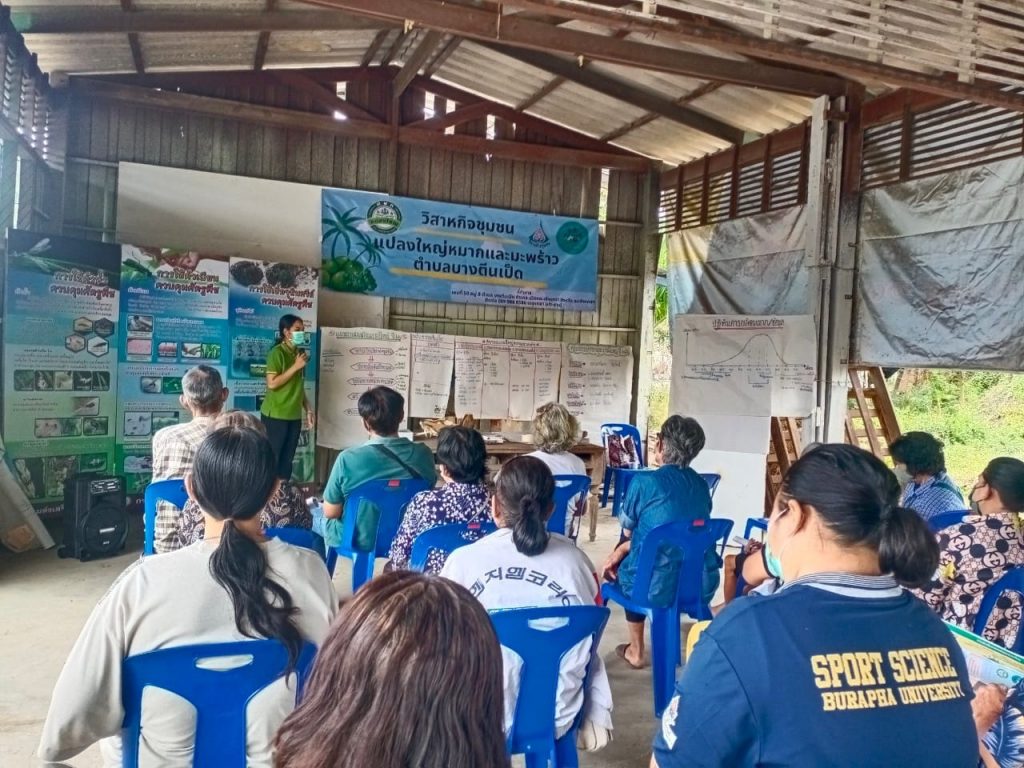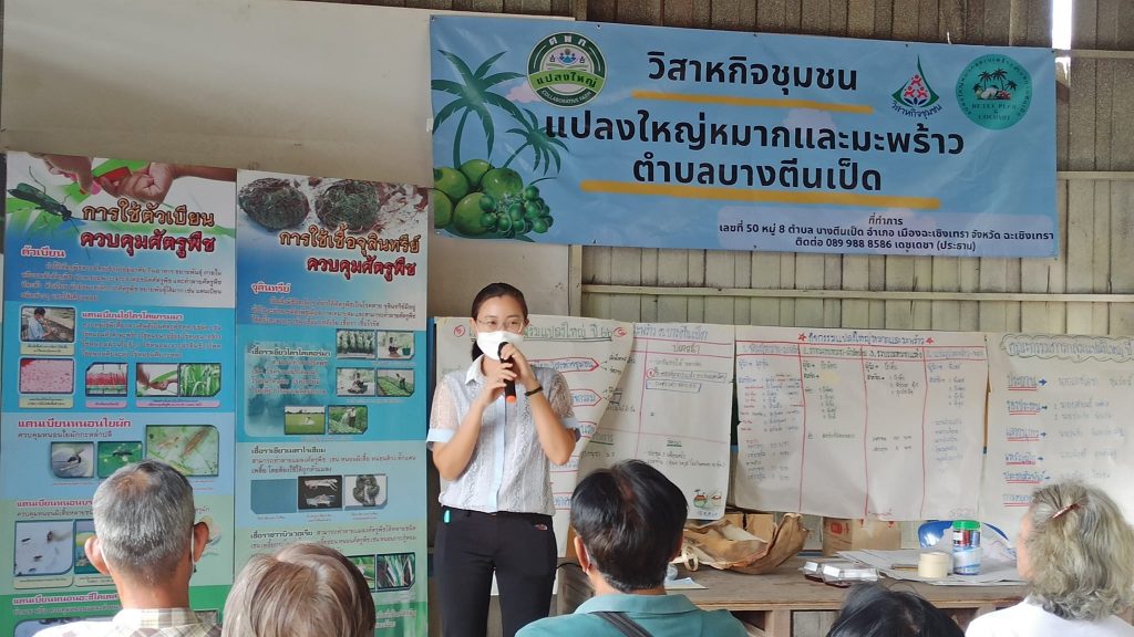 วันที่ 11 มกราคม 2566 นางสาวจริยา นิยมพานิช เกษตรอำเภอเมืองฉะเชิงเทรา พร้อมด้วยเจ้าหน้าที่สำนักงานเกษตรอำเภอเมืองฉะเชิงเทรา จัดโครงการระบบส่งเสริมเกษตรแบบแปลงใหญ่ ประจำปีงบประมาณ พ.ศ.2566 กิจกรรมย่อย การบริหารจัดการถ่ายทอดความรู้ (การจัดเวทีวิเคราะห์จัดทำแผนและปรับปรุงข้อมูล) เพื่อวางแผนการดำเนินกิจกรรมในปี 2566 ร่วมหารือและให้ความรู้เรื่องแผนธุรกิจ รวมถึงทบทวนข้อมูล กำลังการผลิต และช่องทางการจำหน่ายในปัจจุบัน ณ ที่ทำการแปลงใหญ่หมากและมะพร้าวตำบลบางตีนเป็ด อำเภอเมืองฉะเชิงเทรา จังหวัดฉะเชิงเทรา