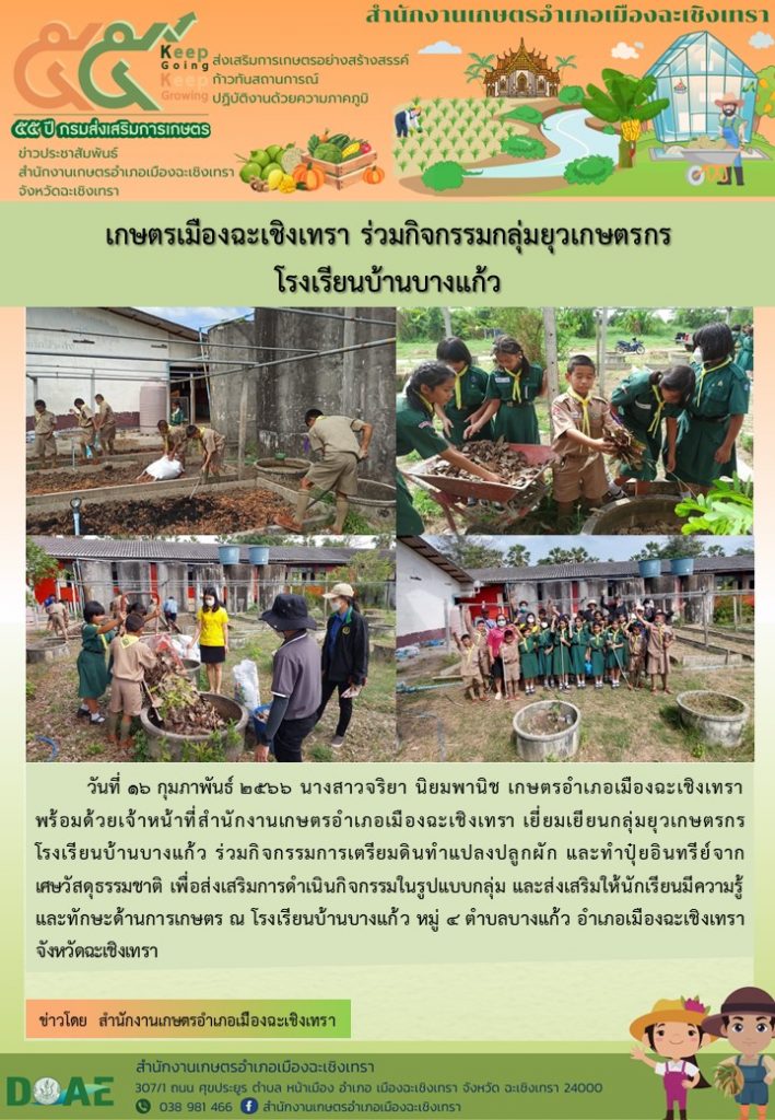 เกษตรเมืองฉะเชิงเทรา ร่วมกิจกรรมกลุ่มยุวเกษตรกร โรงเรียนบ้านบางแก้ว 20 กุมภาพันธ์ 2023 admin_cha ข่าวทั่วไป 0