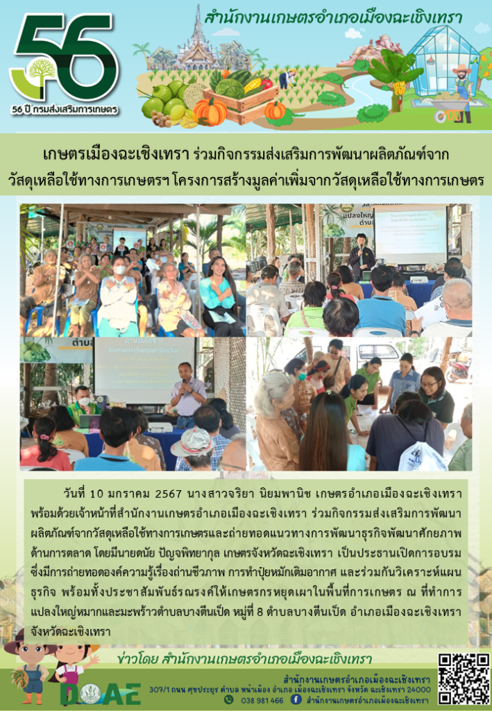 ร่วมจัดกิจกรรมส่งเสริมการพัฒนาผลิตภัณฑ์จากวัสดุเหลือใช้ทางการเกษตร 10 มกราคม 2024 admin_cha ข่าวทั่วไป 0