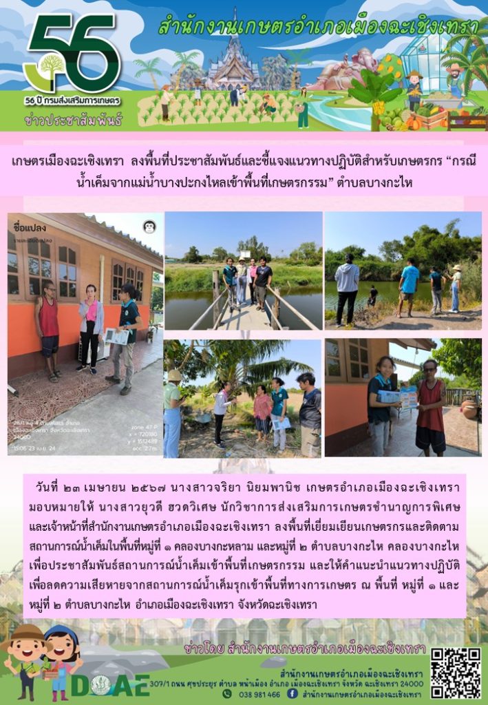 ลงพื้นที่ประชาสัมพันธ์และชี้แจงแนวทางปฏิบัติสำหรับเกษตรกร กรณีน้ำเค็ม 23 เมษายน 2024 admin_cha ข่าวทั่วไป 0