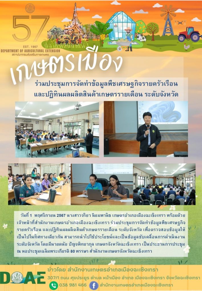 ประชุมการจัดทำข้อมูลพืชเศรษฐกิจรายครัวเรือน และปฏิทินผลผลิตสินค้าเกษตรรายเดือน ระดับจังหวัด 1 พฤศจิกายน 2024 admin_cha ข่าวทั่วไป 0