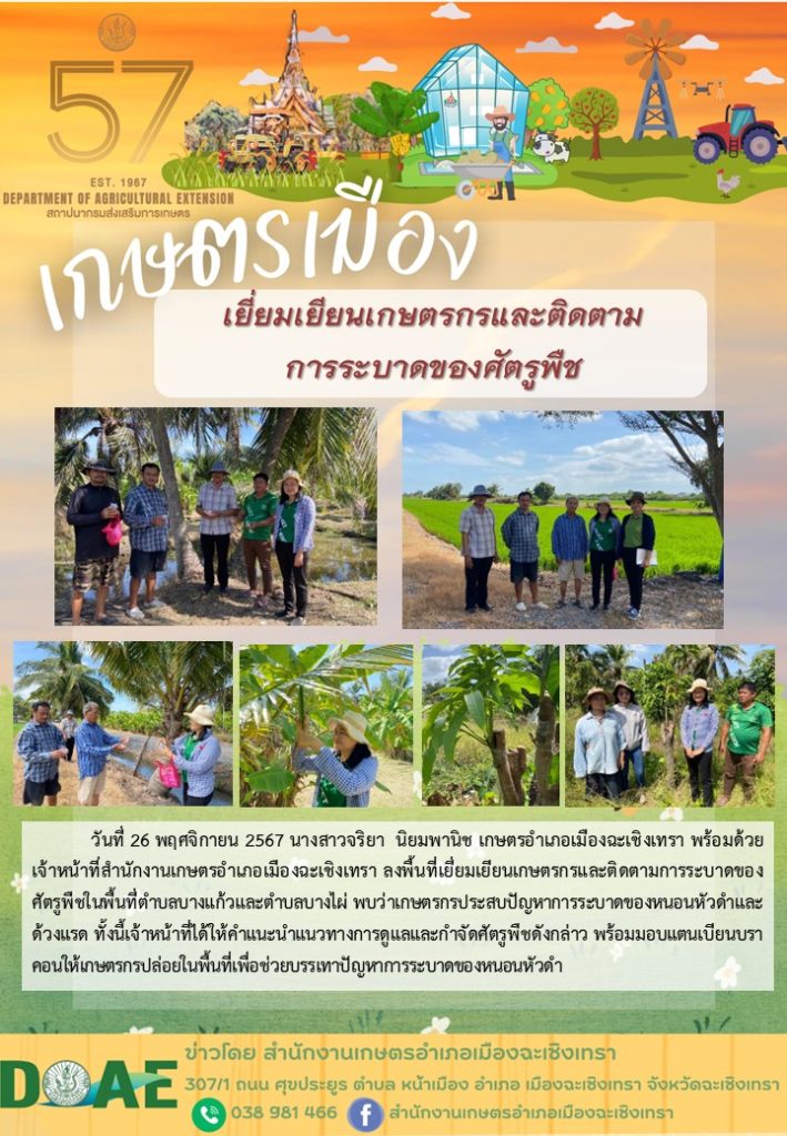 ลงพื้นที่เยี่ยมเยียนเกษตรกรและติดตามการระบาดของศัตรูพืชในพื้นที่ตำบลบางแก้วและตำบลบางไผ่ 27 พฤศจิกายน 2024 admin_cha ข่าวทั่วไป 0
