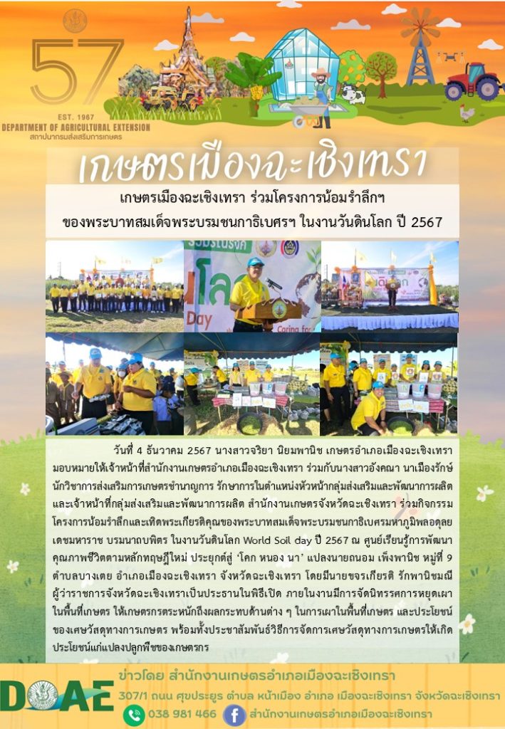 ร่วมกิจกรรมโครงการน้อมรำลึกและเทิดพระเกียรติคุณของพระบาทสมเด็จพระบรมชนกาธิเบศรมหาภูมิพลอดุลยเดชมหาราช บรมนาถบพิตร ในงานวันดินโลก 4 ธันวาคม 2024 admin_cha ข่าวทั่วไป 0
