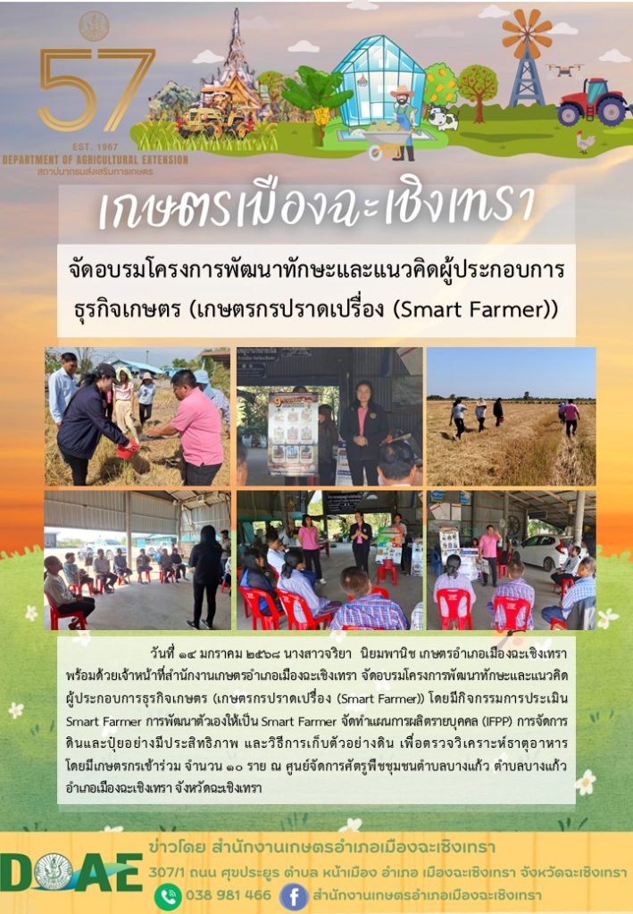 จัดอบรมโครงการพัฒนาทักษะและแนวคิดผู้ประกอบการธุรกิจเกษตร (เกษตรกรปราดเปรื่อง (Smart Farmer) 14 มกราคม 2024 admin_cha ข่าวทั่วไป 0