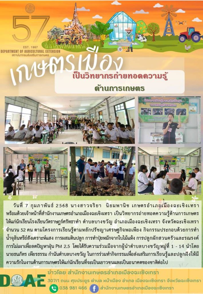 ถ่ายทอดความรู้ด้านการเกษตร ให้แก่นักเรียนโรงเรียนวัดราษฎร์ศรัทธาทำ 7 กุมภาพันธ์ 2025 admin_cha ข่าวทั่วไป 0