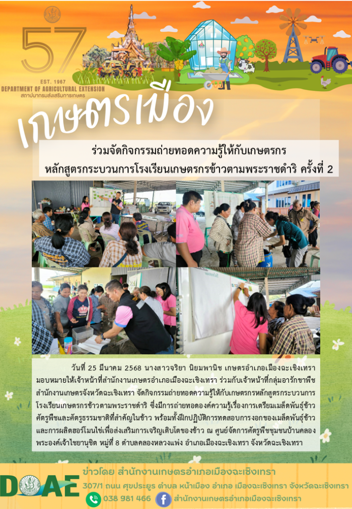 ร่วมถ่ายทอดหลักสูตรกระบวนการโรงเรียนเกษตรกรข้าวตามพระราชดำริ ครั้งที่ 2 25 มีนาคม 2025 admin_cha ข่าวทั่วไป 0
