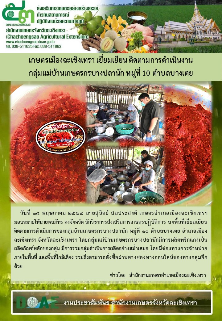 วันที่ 24 พฤษภาคม 2564 นายสุนิตย์ สมประสงค์ เกษตรอำเภอเมืองฉะเชิงเทรา